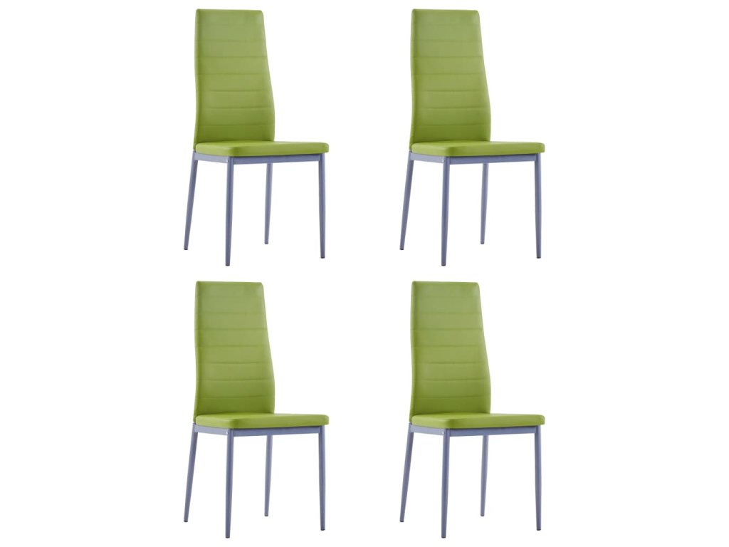 Doska stola je vyrobená z veľmi odolného tvrdeného skla, ktoré sa ľahko čistí. Každá stolička má kvalitný poťah z umelej kože. Jemné čalúnené sedadlá sú veľmi pohodlné.
