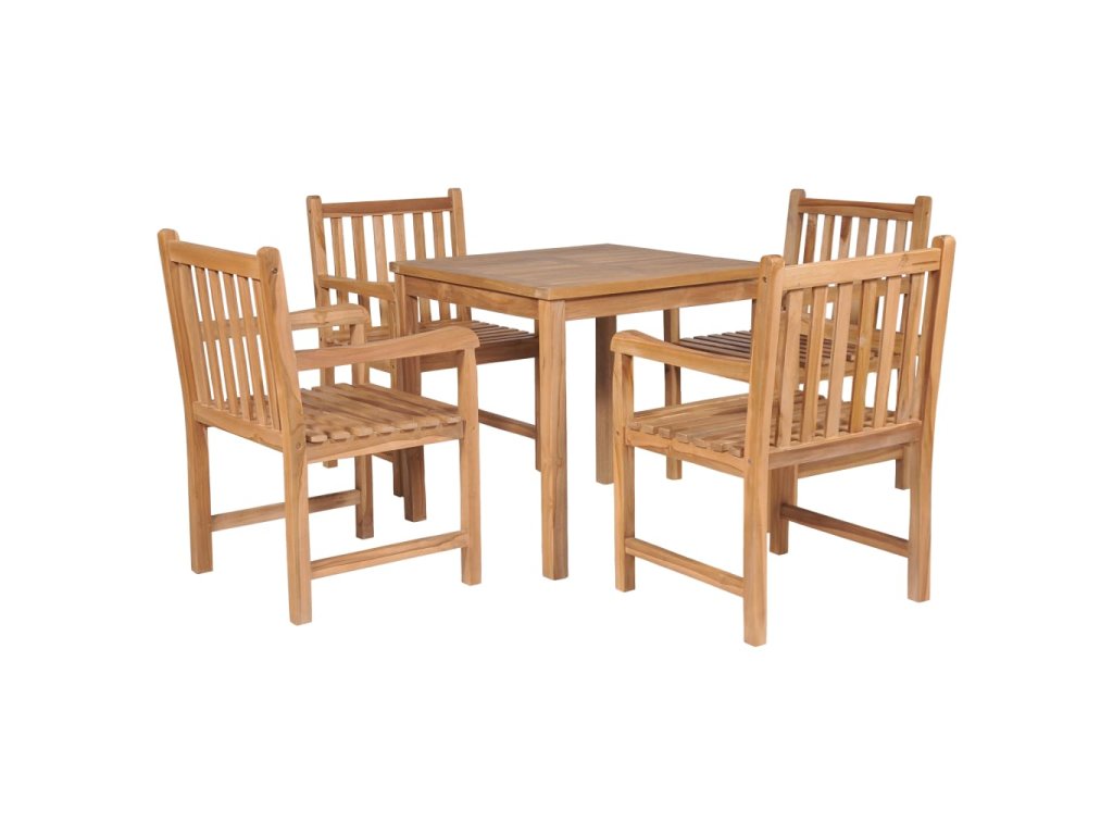 Krásna povrchová úprava na báze vody drevu dodáva teplý farebný odtieň. Tento stôl z dreveného masívu má extra hrubú dosku (3 cm) a veľké nohy (5x5 cm), vďaka čomu je veľmi trvácny a ponúka dostatok miesta pre vašich hostí. Súprava nábytku sa vyznačuje svojou vodovzdornosťou a klasickým vzhľadom, a tak ju môžete umiestniť kamkoľvek - do interiéru aj exteriéru! Jedálenská súprava sa jednoducho montuje. V balení sa nachádza 1 stôl a 4 stoličky.