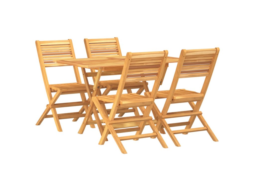- Masívne teakové drevo: Táto jedálenská súprava je vyrobená z masívneho teakového dreva. Masívne teakové drevo je krásny prírodný materiál. Bolo vyzreté, umelo vysušené a jemne obrúsené, čo mu dalo veľmi hladký vzhľad. Teakové drevo je známe svojou výnimočnou pevnosťou a odolnosťou voči poveternostným vplyvom.