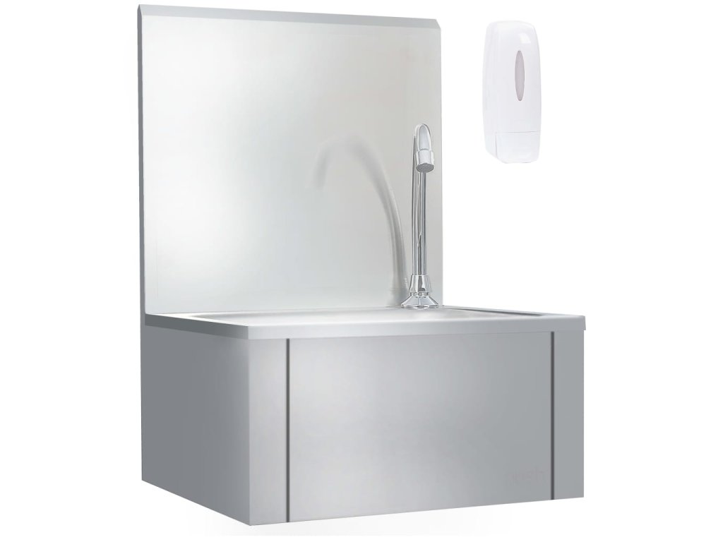 Okrem toho má aj kohútik na teplú a studenú vodu, zadný panel a dávkovač mydla. Umývadlo sa jednoducho montuje a je vhodné na montáž na stenu.