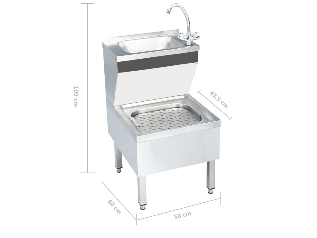 Vďaka dizajnu 2 vaničiek si môžete umývať ruky v hornej vaničke a prať oblečenie v spodnej vaničke. Umývadlo z odolnej nehrdzavejúcej ocele vám umožní prekvapivo jednoduché a rýchle umývanie rúk. Umývadlo je ideálne na prípravu občerstvenia, na kateringové služby, do verejných kuchýň a jedální, pracovných dielní či záhradné kôlní. Uplatní sa ale aj ako vonkajší drez.