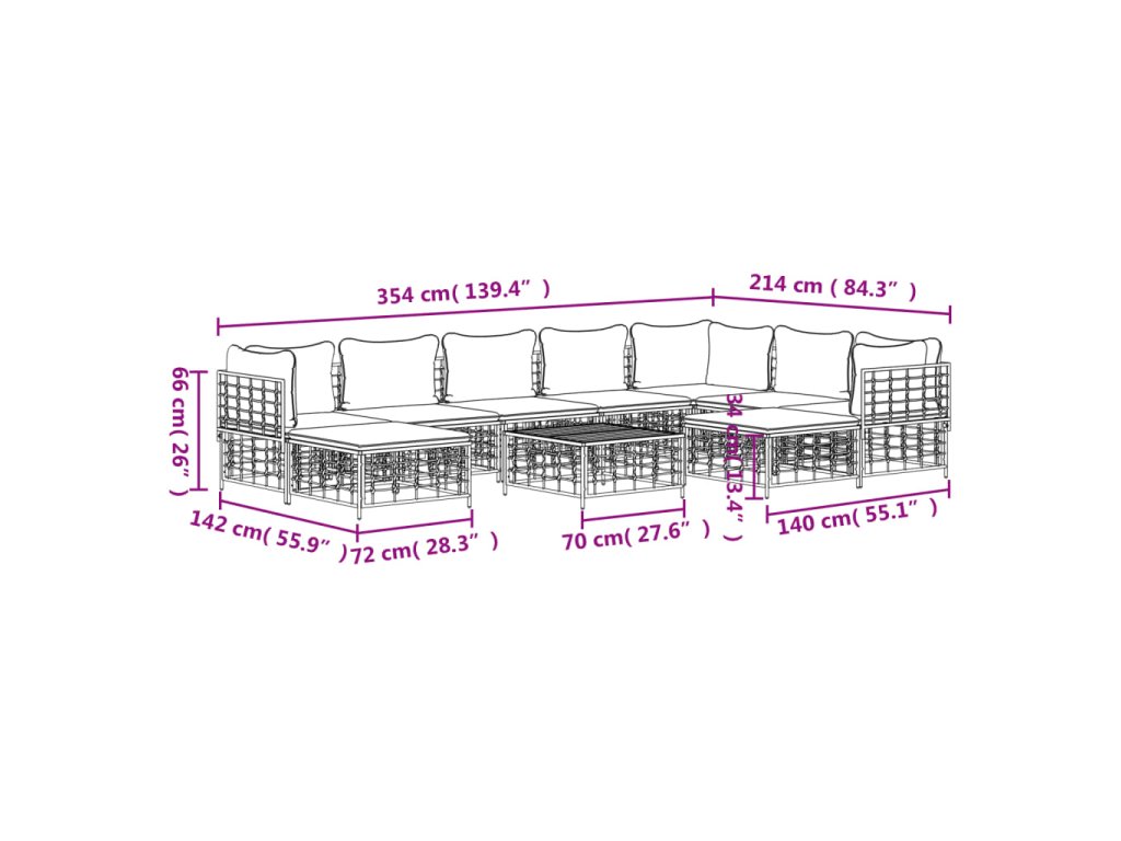- Modulárny dizajn: Záhradná súprava nábytku je flexibilná a ľahko sa presúva, takže ju môžete skombinovať s inými modulárnymi segmentmi vo webovom obchode a vytvoriť si tak svoje vlastné osobné konfigurácie záhradnej sedacej súpravy!