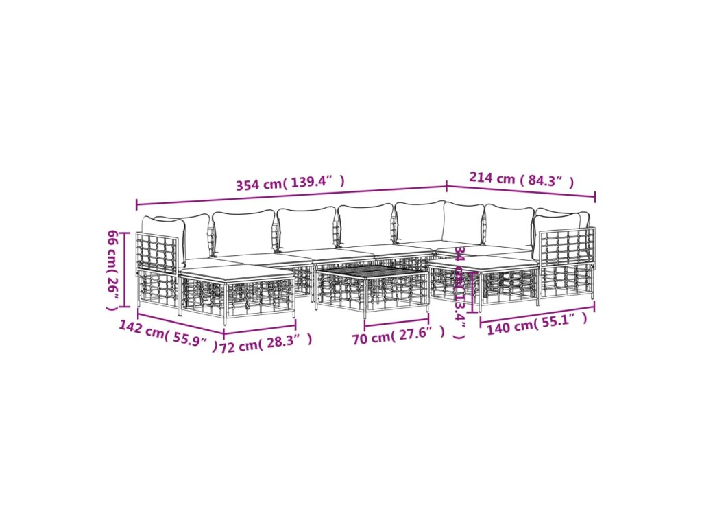 - Modulárny dizajn: Záhradná súprava nábytku je flexibilná a ľahko sa presúva, takže ju môžete skombinovať s inými modulárnymi segmentmi vo webovom obchode a vytvoriť si tak svoje vlastné osobné konfigurácie záhradnej sedacej súpravy!