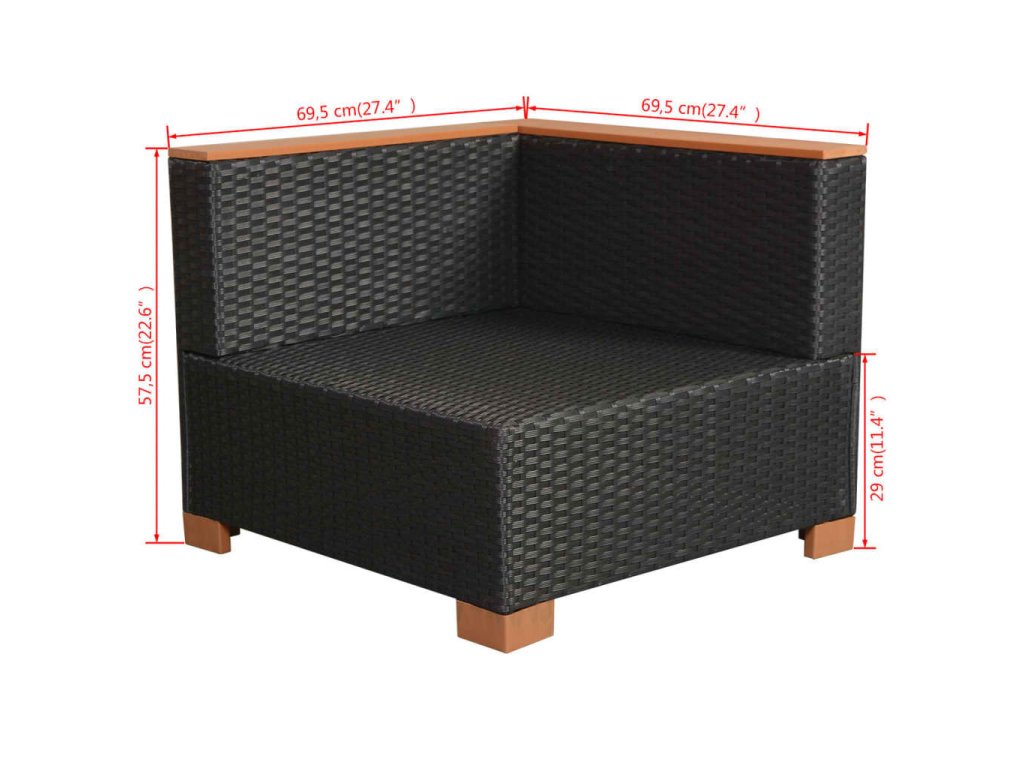 - Rozmery rohovej pohovky: 69,5 x 69,5 x 57,5 cm (D x Š x V)