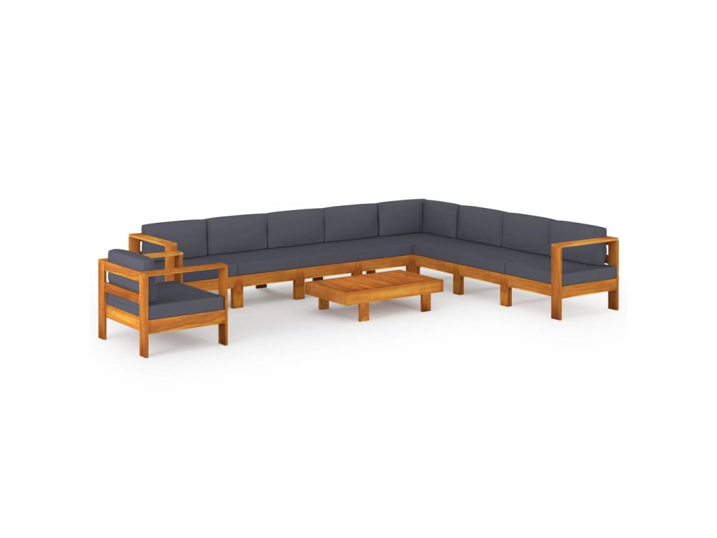 vidaXL 10-dielna záhradná sedacia súprava s tmavosivými podložkami akáciové drevo
