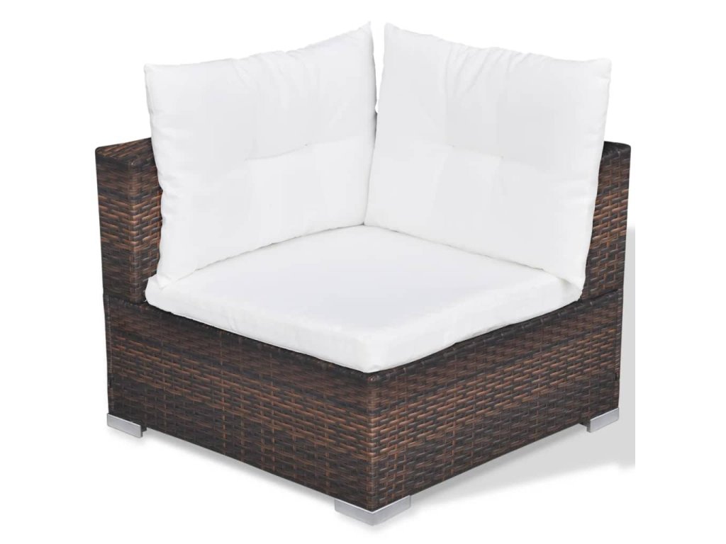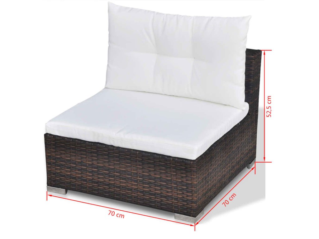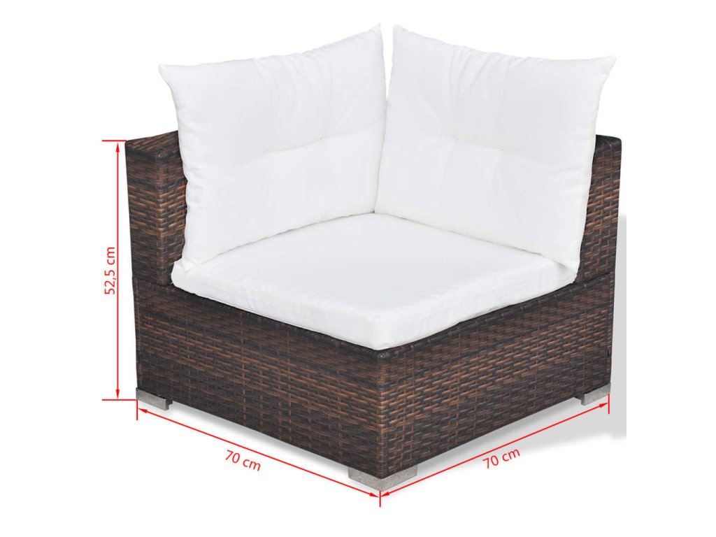 Sedacia súprava je vyrobená z vodovzdorného PE ratanu, ktorý je odolný voči poveternostným vplyvom, takže sa ľahko čistí, je odolná a vhodná na každodenné používanie. Sedacia súprava má pevný oceľový rám s práškovou povchovou úpravou, ktorý je skutočne trvácny. Súprava je okrem toho ľahká a pozostáva z modulov, takže sa dá ľubovoľne rozmiestniť a presúvať, aby zapadla do akýchkoľvek priestorov. Hrubé odnímateľné podložky vám poskytnú optimálne pohodlie.