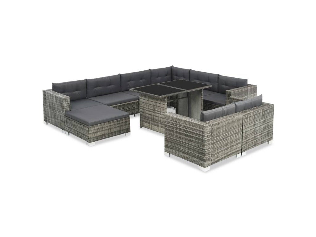 Táto polyratanová sedacia súprava pozostáva z 5 rohových pohoviek, 3 stredových pohoviek, 1 taburetky, 1 jedálenského stola a 18 podložiek a poskytne vám štýlové posedenie do záhrady alebo na terasu.