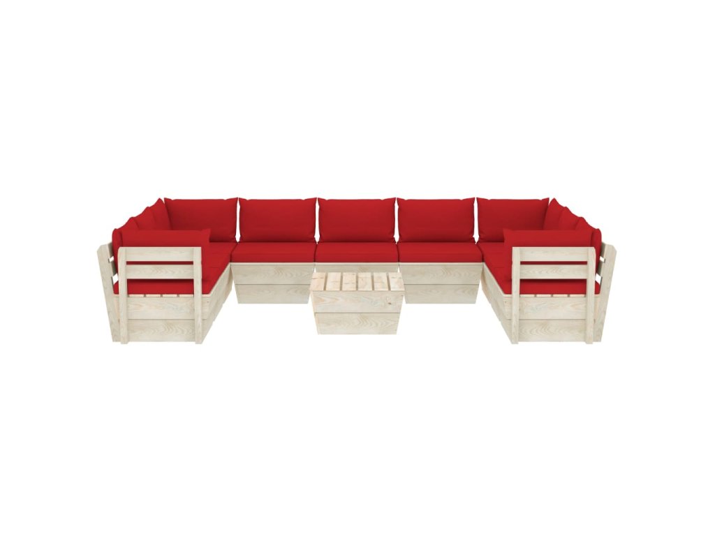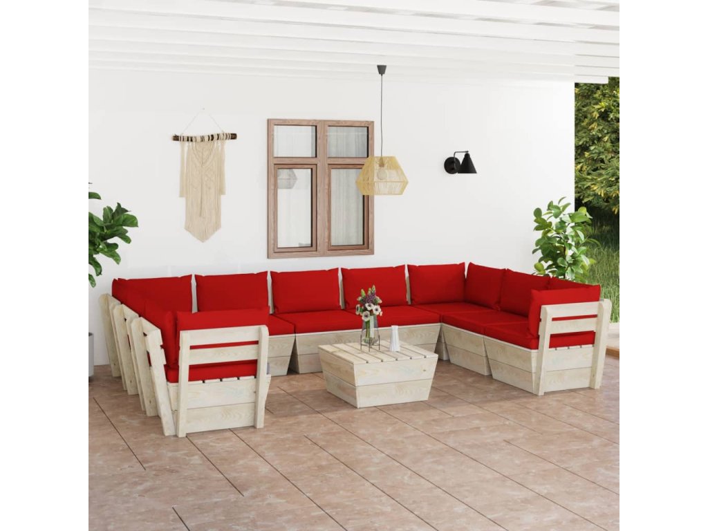 Táto 10-dielna záhradná sedacia súprava z paliet sa dodáva s podložkami a poskytne vám skvelé miesto na oddychovanie, poobedný spánok či príjemné posedenia s rodinou a priateľmi počas krásnych slnečných dní. Drevená sedacia súprava s nadčasovým paletovým dizajnom vnesie do vašej záhrady, na terasu či do obývačky nádych rustikálnej atmosféry.