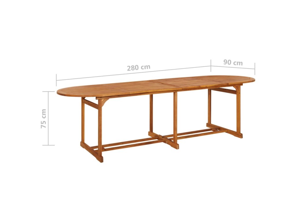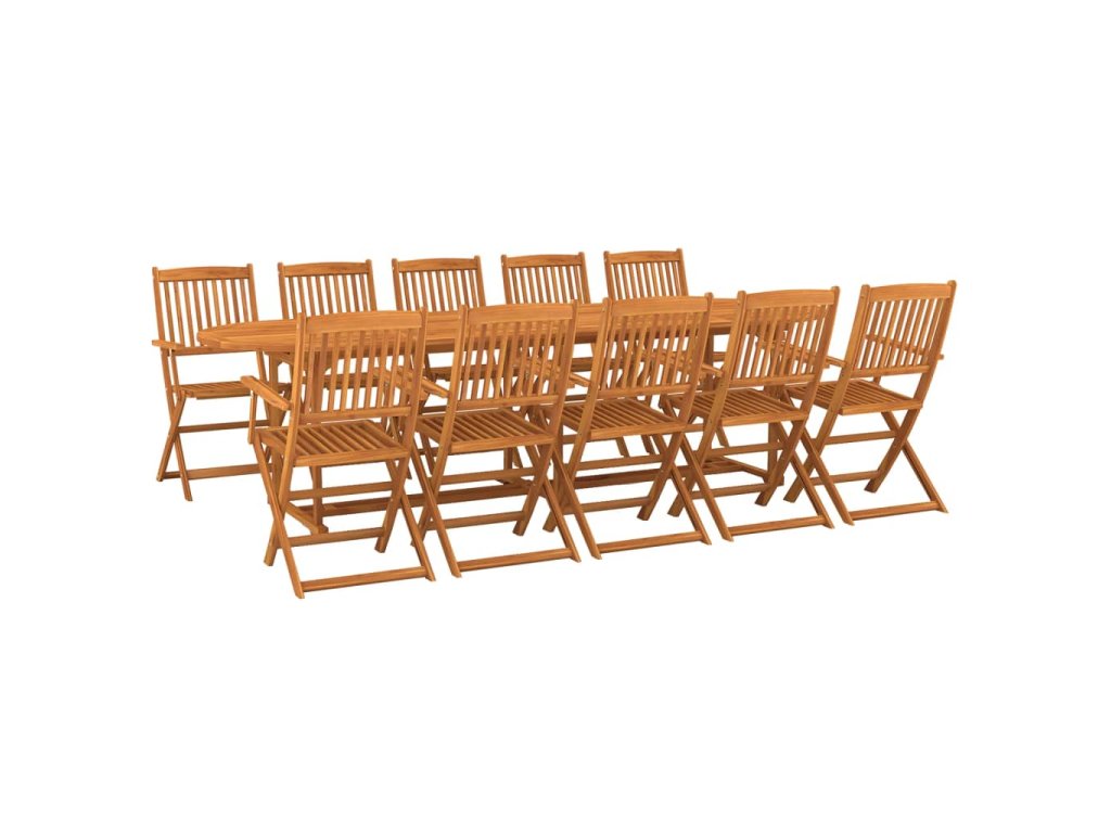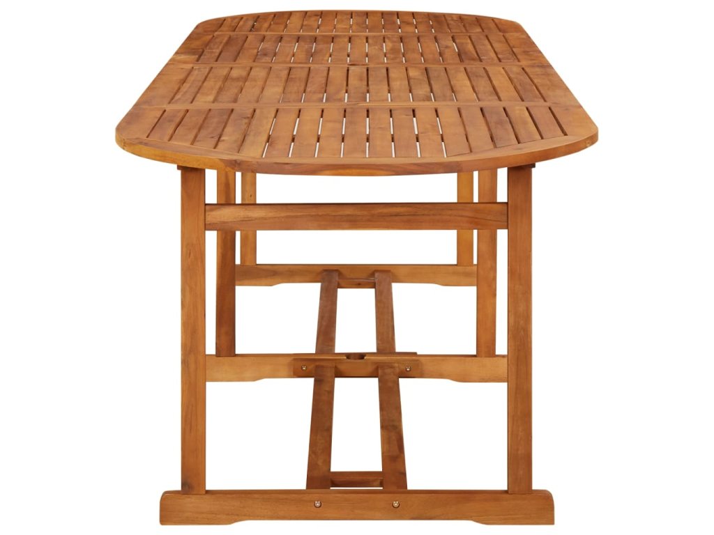 Vonkajšia jedálenská súprava je vyrobená z akáciového masívu, tropického tvrdého dreva, ktoré je trvácne a odolné voči poveternostným vplyvom, a tak vám vydrží dlhé roky. Povrch s olejovým náterom sa dá ľahko očistiť navlhčenou handričkou. Stoličky na terasu sa navyše dajú poskladať do kompaktných rozmerov, aby nezaberali veľa miesta, keď ich nepoužívate.