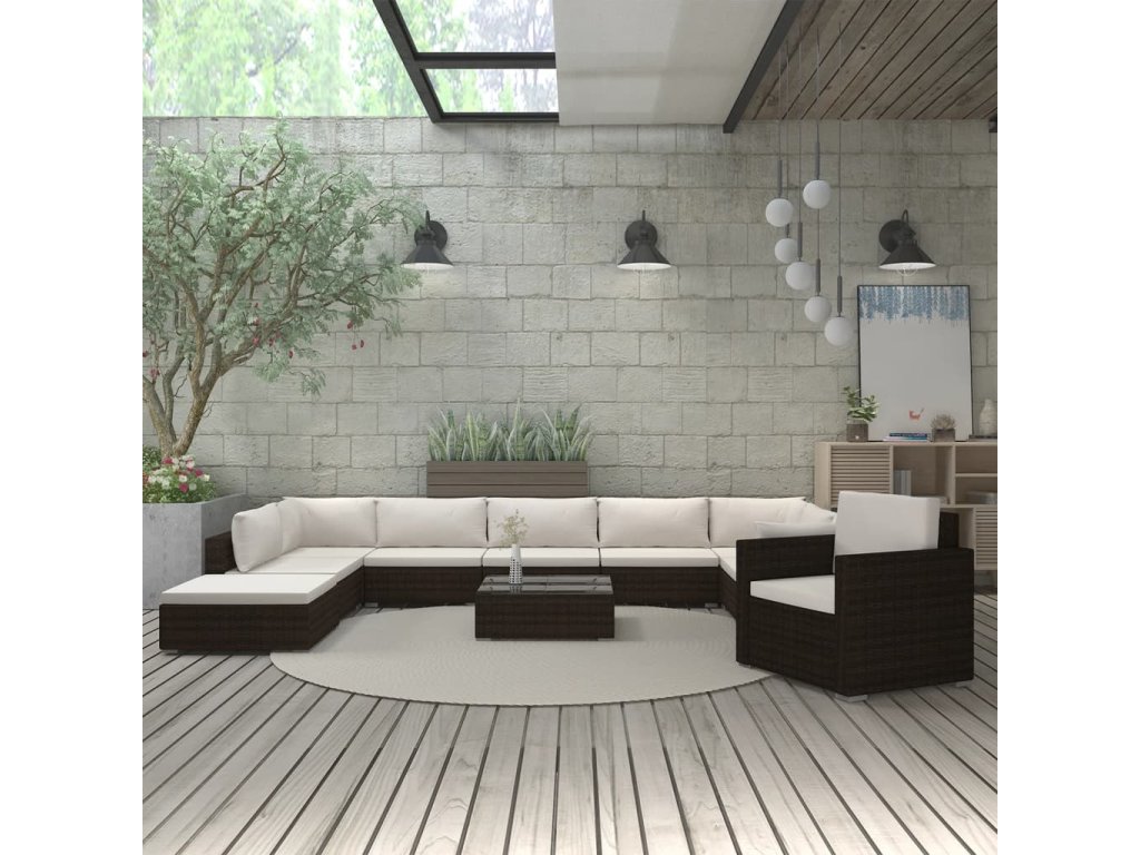 Sedacia súprava je vyrobená z vodovzdorného PE ratanu, ktorý je odolný voči poveternostným vplyvom, takže sa ľahko čistí, je odolná a vhodná na každodenné používanie. Sedacia súprava má pevný oceľový rám s práškovou povchovou úpravou, ktorý je skutočne trvácny. Súprava je okrem toho ľahká a pozostáva z modulov, takže sa dá ľubovoľne rozmiestniť a presúvať, aby zapadla do akýchkoľvek priestorov. Hrubé odnímateľné podložky vám poskytnú optimálne pohodlie.