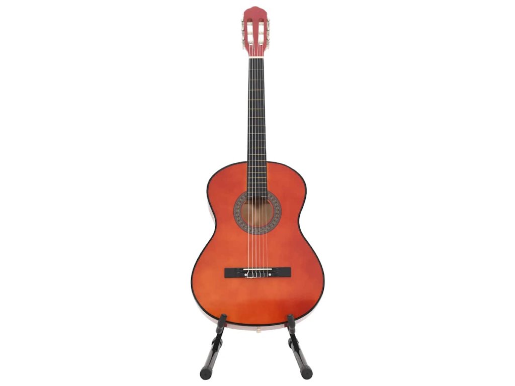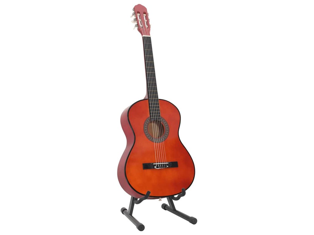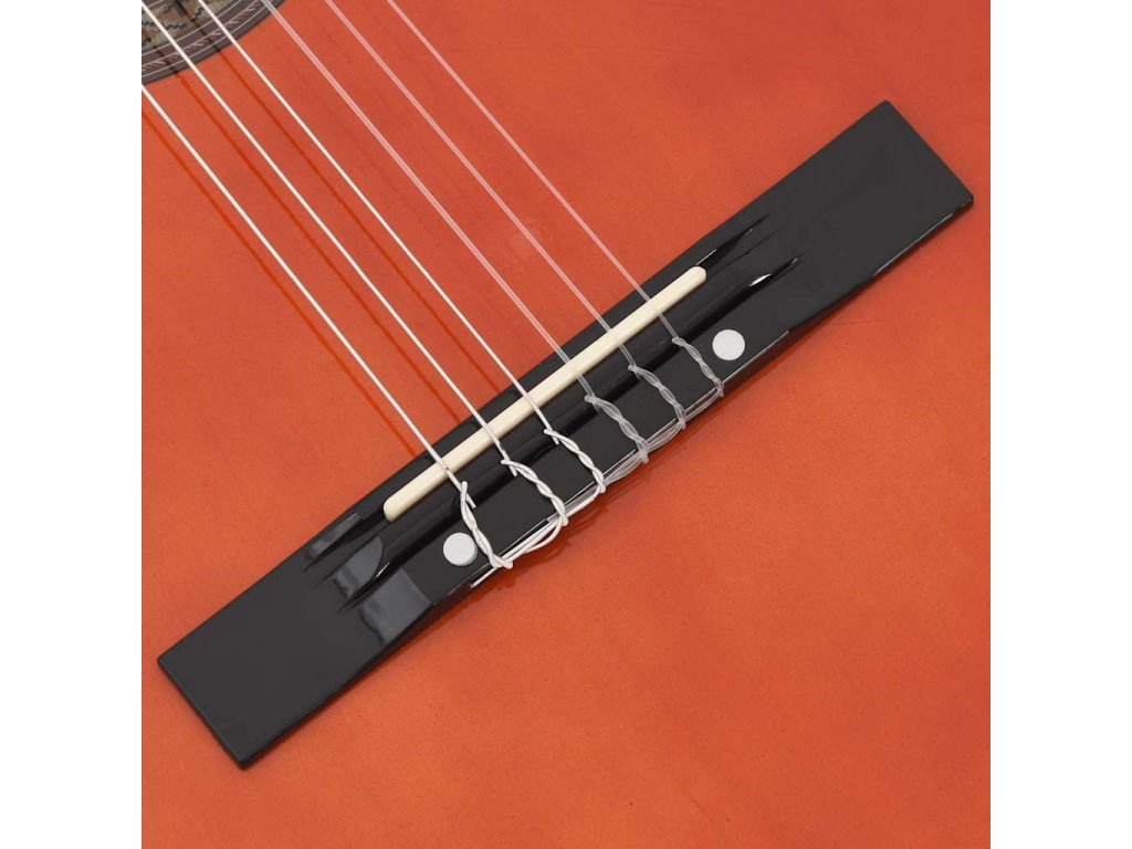 Naša klasická gitara je skvelý nástroj pre začiatočníkov, amatérov a hudobníkov akejkoľvek úrovne. V balení je okrem gitary aj taška na gitaru, popruh, trsátka, držiak na trsátka, sada gitarových strún, kľuka na struny, kapodaster, elektrická ladička a držiak na gitaru.