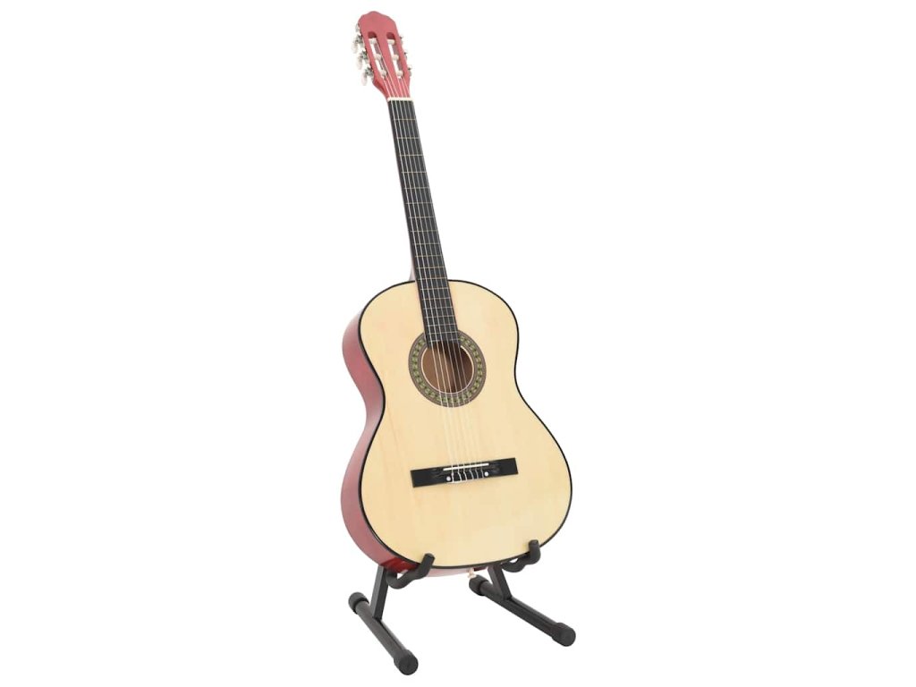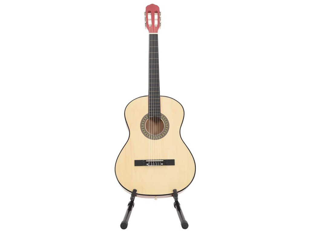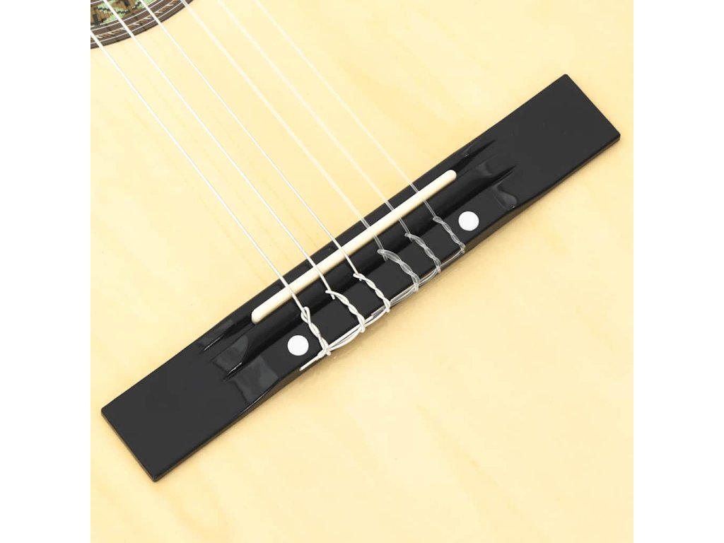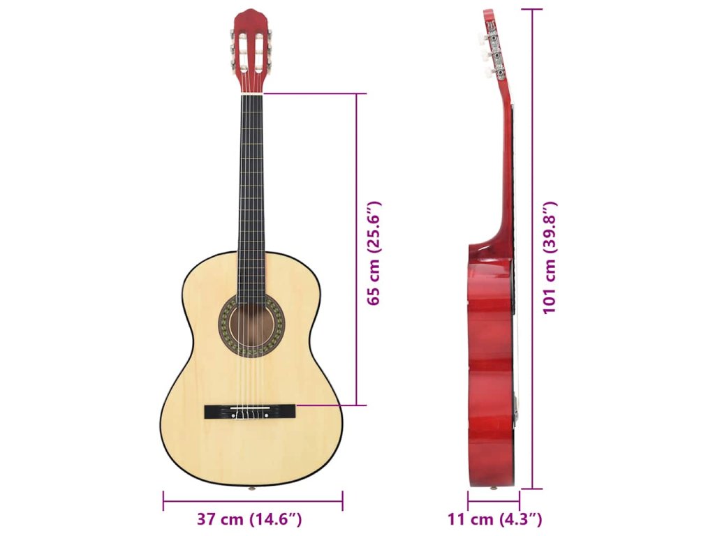 Naša klasická gitara je skvelý nástroj pre začiatočníkov, amatérov a hudobníkov akejkoľvek úrovne. V balení je okrem gitary aj taška na gitaru, popruh, trsátka, držiak na trsátka, sada gitarových strún, kľuka na struny, kapodaster, elektrická ladička a držiak na gitaru.