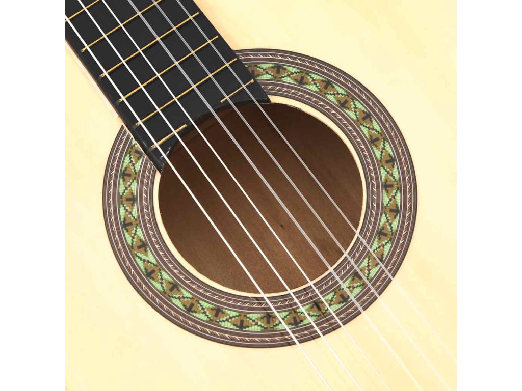 Táto gitara je vyrobená z masívneho lipového dreva s tvrdými plastovými kolíkmi a hmatníkom. Hodnota tejto gitary spočíva vo vynikajúcej kvalite zvuku a krásnom klasickom dizajnu. Táto gitara s 65 cm hmatníkom má všetko, čo potrebujete, aby ste sa mohli stať gitaristom.