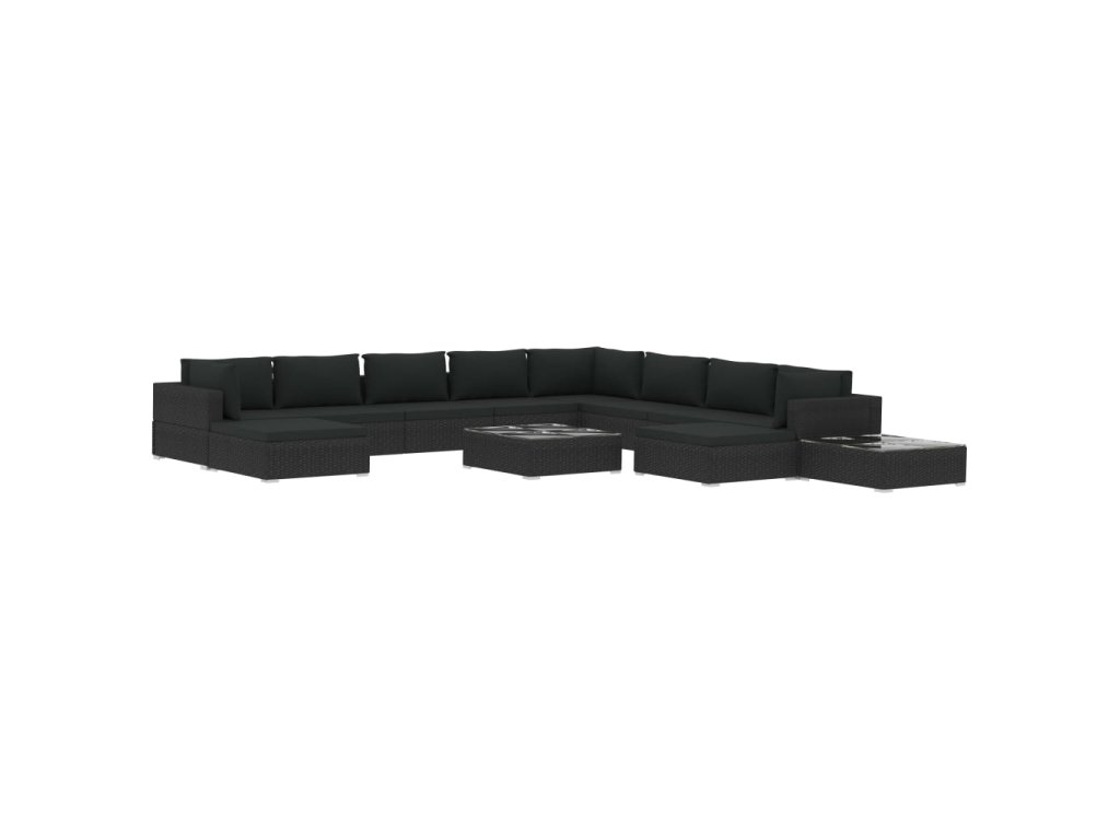 V balení sa nachádzajú 3 rohové pohovky, 5 stredových pohoviek, 2 taburetky, 2 konferenčné stolíky, 10 podložiek na sedadlo a 11 podložiek na operadlo. Poznámka: Odporúčame súpravu zakrývať v prípade dažďa, snehu či mrazov.