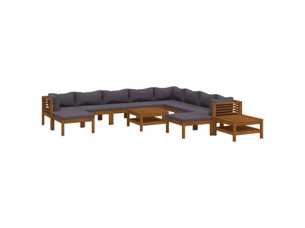 Sedacia súprava s rámom z akáciového masívu je pevná, robustná a trvácna. Súprava pohoviek je ošetrená olejovým náterom, vďaka čomu je vhodná do exteriéru. Odnímateľné podložky s hustou výplňou poskytujú maximálne pohodlie. Súčasťou súpravy je aj konferenčný stolík s jedinečným latkovým dizajnom. Vďaka praktickej modulárnej konštrukcii sa jednotlivé diely dajú ľubovoľne usporiadať a prispôsobiť okolitému prostrediu.