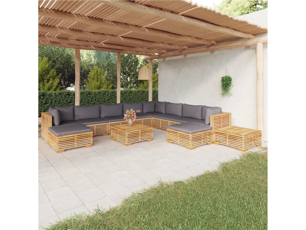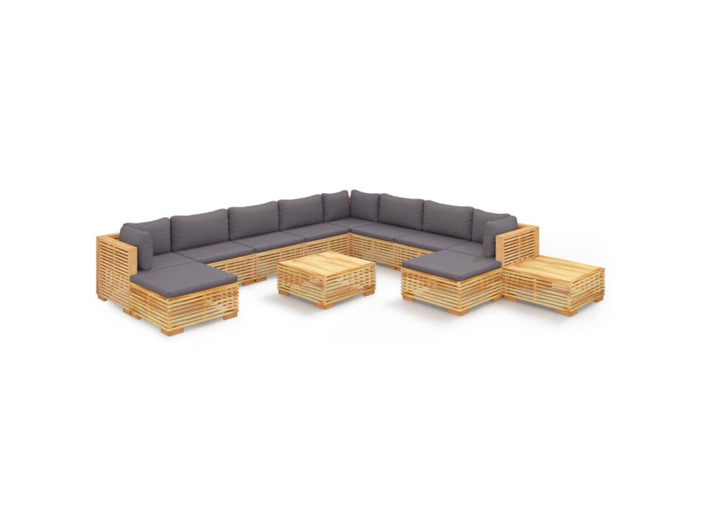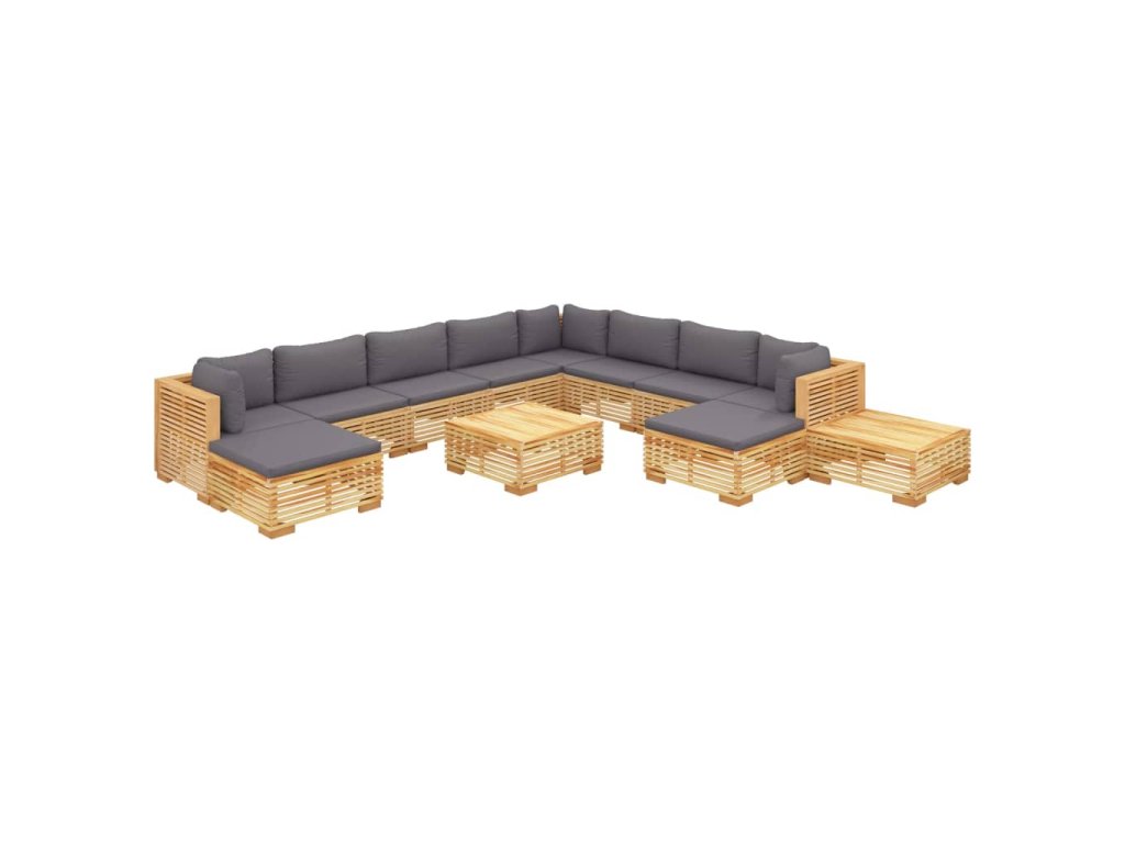- Masívne teakové drevo: Masívne teakové drevo je krásny prírodný materiál. Bolo vyzreté, umelo vysušené a jemne obrúsené, čo mu dalo veľmi hladký vzhľad. Teakové drevo je známe svojou výnimočnou pevnosťou a odolnosťou voči poveternostným vplyvom.