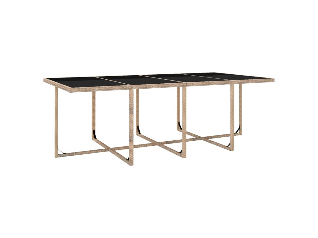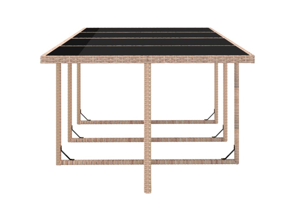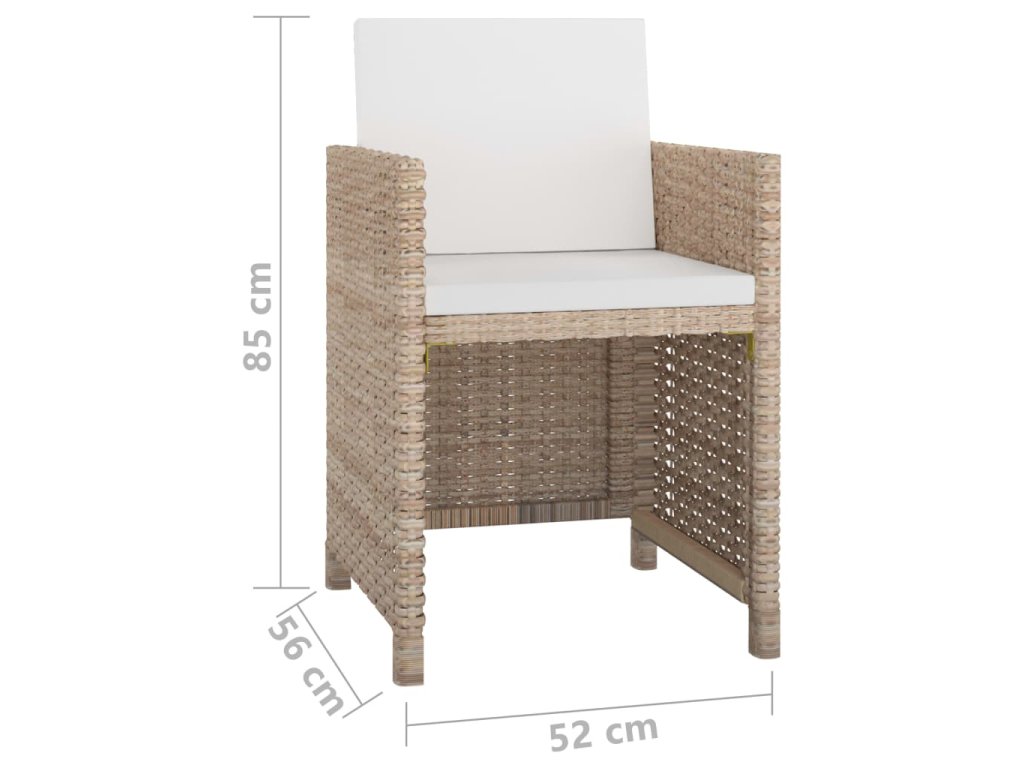 Táto ratanová jedálenská súprava s elegantným dizajnom bude skvelou voľbou pre stolovanie pod šírym nebom alebo pre odpočinok v záhrade. Jedálenská súprava sa ľahko čistí, je odolná a vhodná pre každodenné použitie, pretože je vyrobená z odolného a nepremokavého PE ratanu. Vďaka oceľovým rámom s práškovou úpravou sú stoličky a stôl pevné a odolné. S každou časťou súpravy sa dá ľahko manipulovať, pretože má ľahkú konštrukciu. Sklenená doska stola sa ľahko čistí vlhkou handričkou.