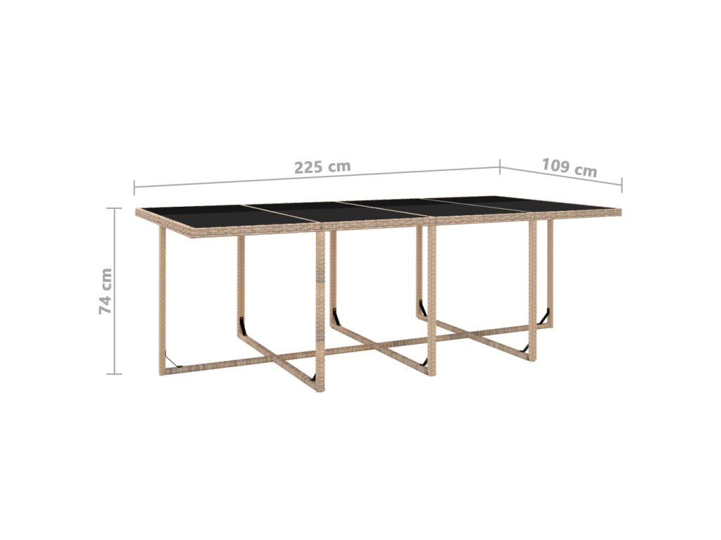 - Rozmery stola: 225 x 109 x 74 cm (D x Š x V)