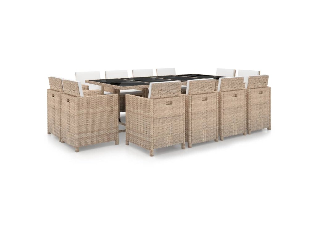 Balenie obsahuje 1 stôl, 12 stoličiek a 24 podušiek. Poznámka: Počas dažďa, snehu a mrazov odporúčame súpravu zakrývať.