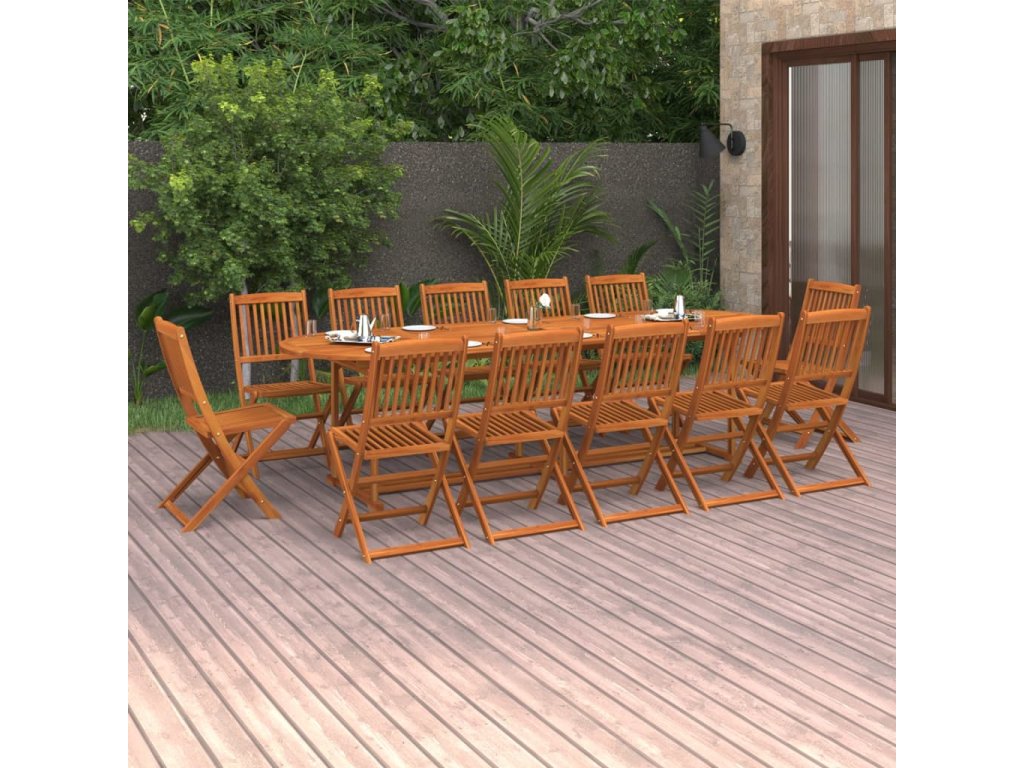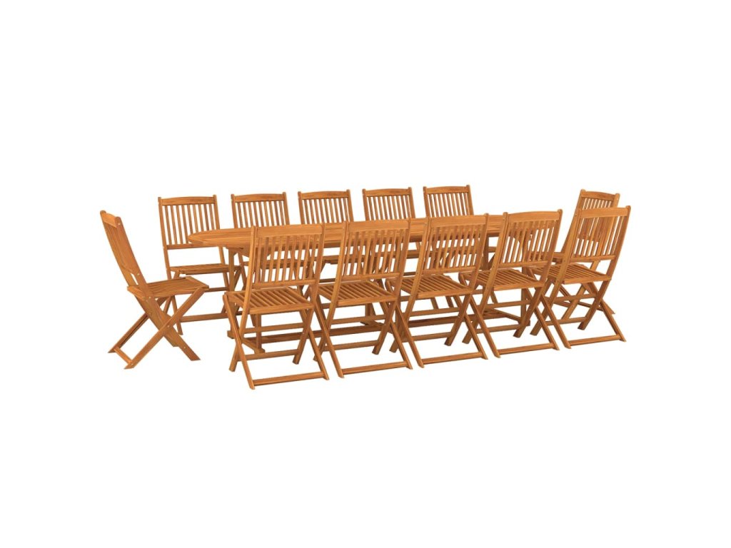 Vonkajšia jedálenská súprava je vyrobená z akáciového masívu, tropického tvrdého dreva, ktoré je trvácne a odolné voči poveternostným vplyvom, a tak vám vydrží dlhé roky. Povrch s olejovým náterom sa dá ľahko očistiť navlhčenou handričkou. Stoličky na terasu sa navyše dajú poskladať do kompaktných rozmerov, aby nezaberali veľa miesta, keď ich nepoužívate.