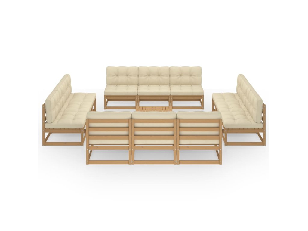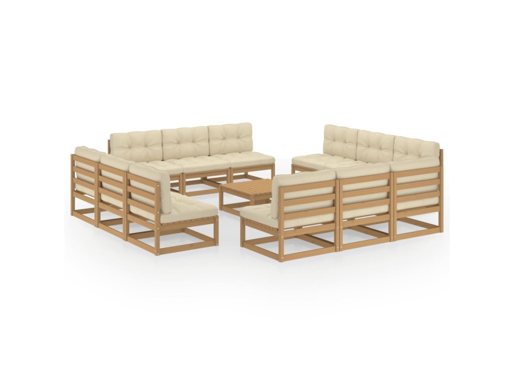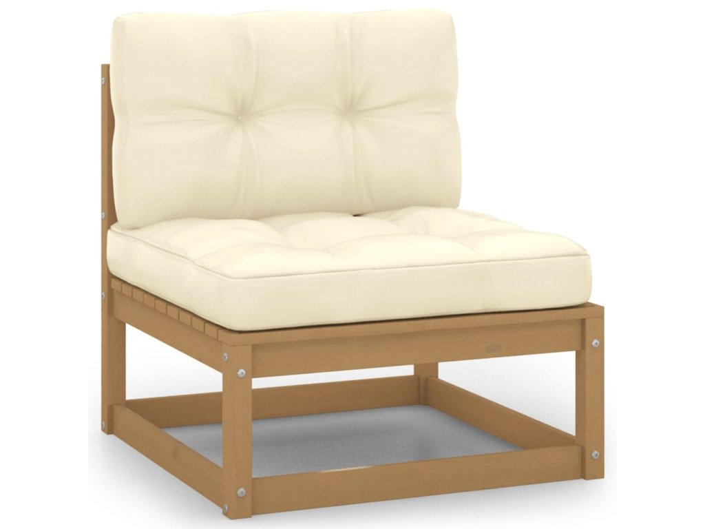 Záhradná sedacia súprava je vyrobená z masívneho borovicového dreva, vďaka čomu je robustná a stabilná. Vankúše jej dodávajú dodatočné pohodlie. Môžete ju skombinovať s inými modulárnymi segmentmi a vytvoriť si tak svoje vlastné konfigurácie záhradného posedenia!