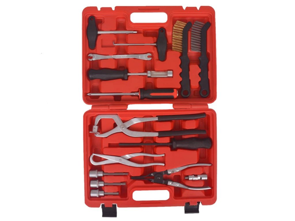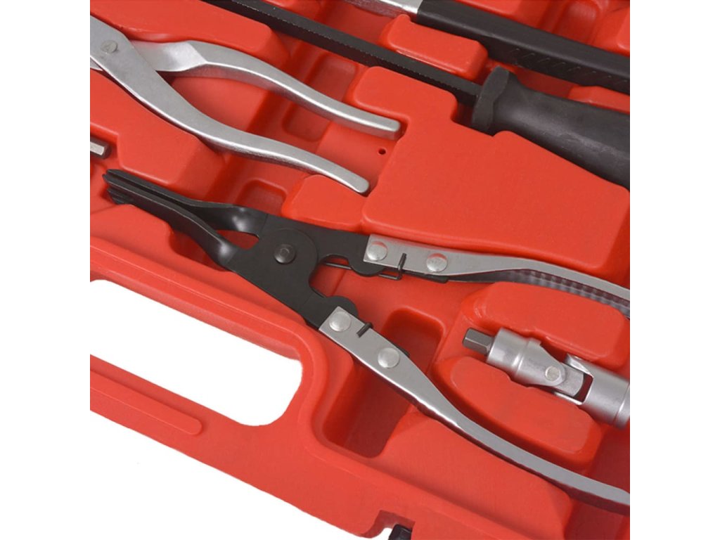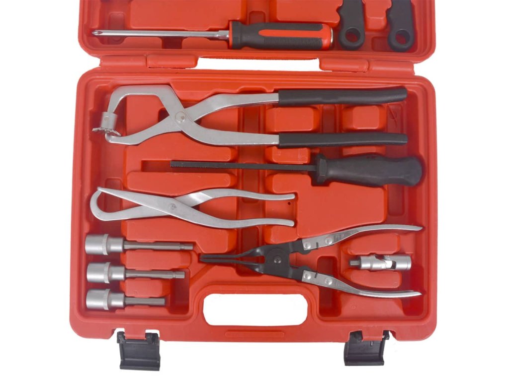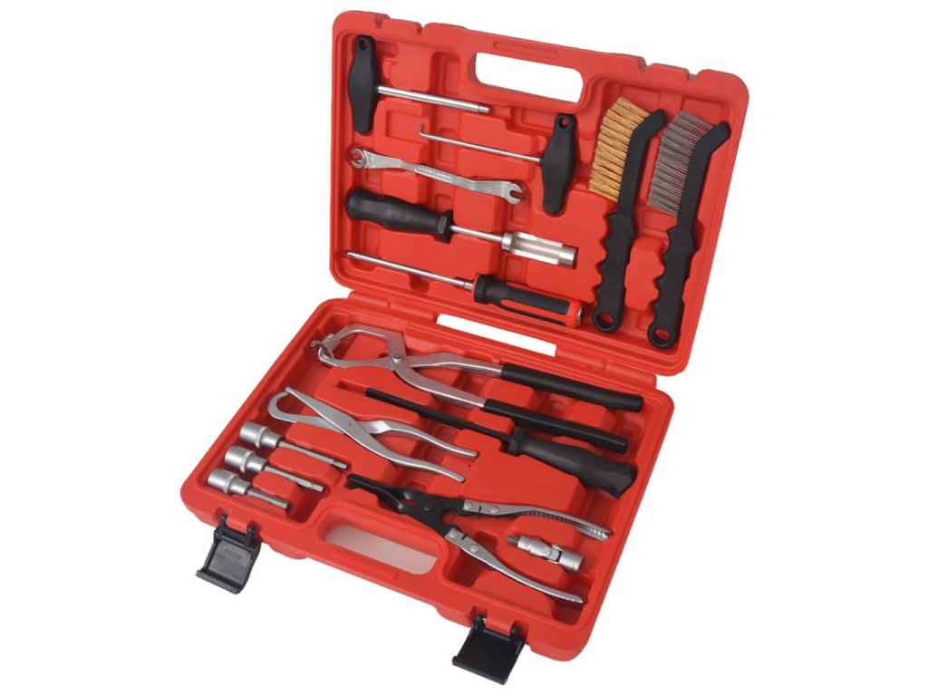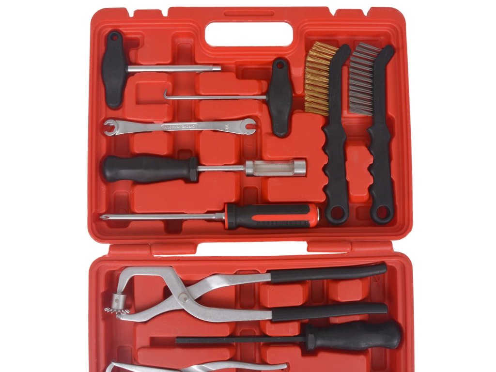 15-dielna sada náradia na údržbu bŕzd poskytuje všetko, čo potrebujete na jednoduchú a efektívnu prácu s bubnovými a kotúčových brzdami.
