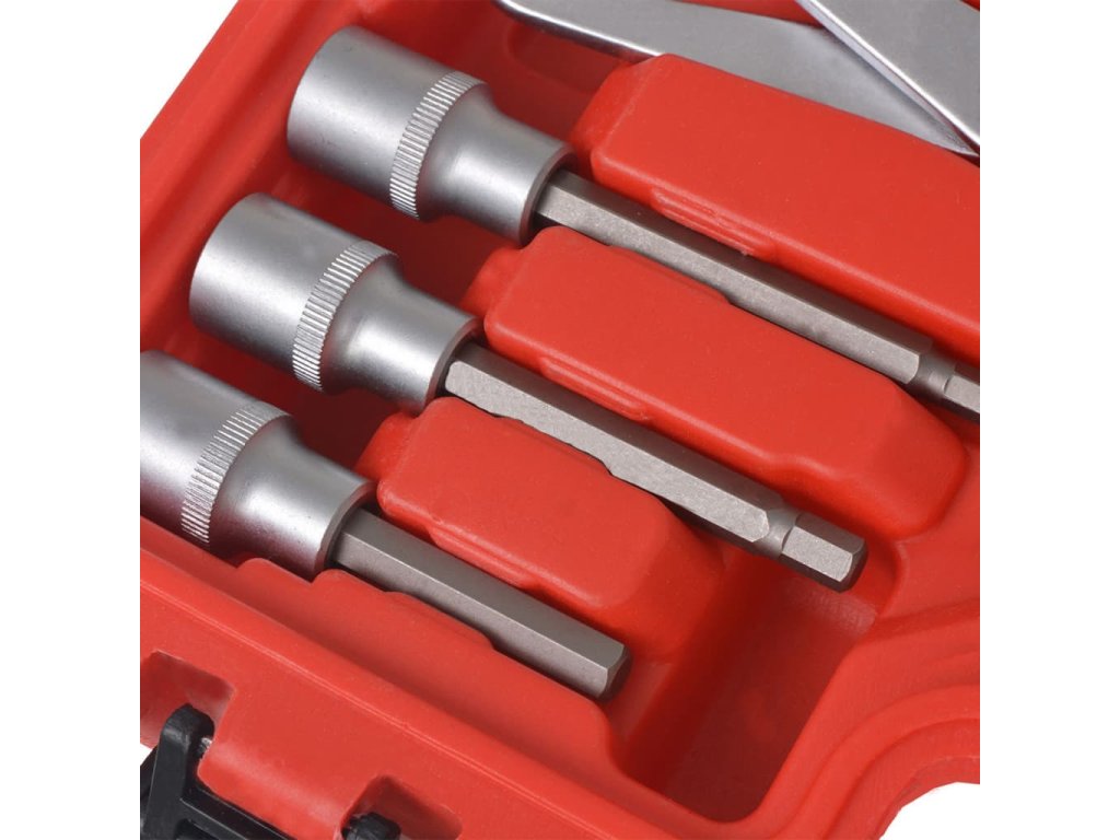 Nástroje vysokej kvality sú vyrobené z odolnej uhlíkovej ocele. Táto komplexná a dobre zorganizovaná sada je dodávaná v praktickom kufríku, ktorý sa ľahko prepravuje a uskladňuje.