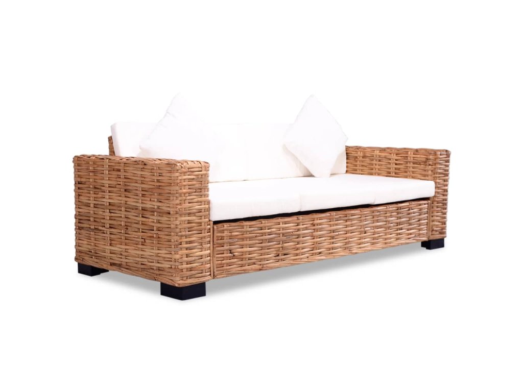 Vďaka vysoko kvalitnému prírodnému ratanovému materiálu sa pohovka jednoducho čistí, je odolná a vhodná na každodenné používanie. Obsahuje trvácny a robustný drevený rám. Vďaka hrubým sedákom a vankúšom je sedačka veľmi pohodlná. Obliečky na sedákoch sa dajú zvliecť a oprať. Široké opierky taktiež zvyšujú pohodlie pri sedení.