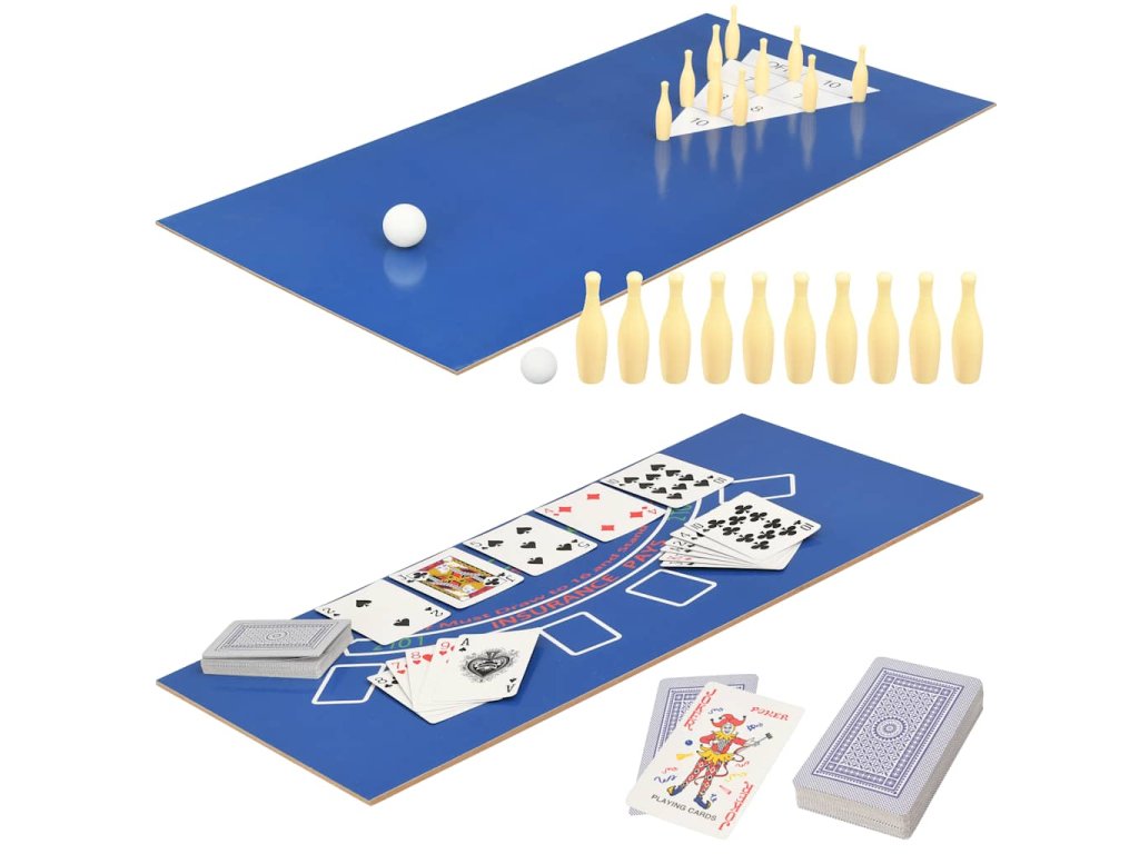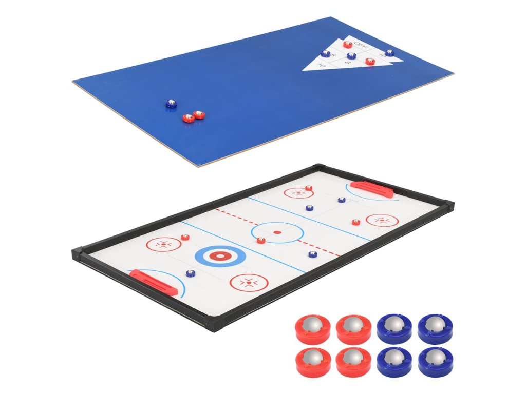 Obsahuje 15 hier, vrátane šachu, dámy, backgammonu, stolného tenisu, shuffleboardu, hokeja, curlingu, bowlingu, futbalu, biliardu, hádzania krúžkov a podkov, piškvoriek, hracích kariet a hokeja. Všetko herné príslušenstvo, ako sú biliardové gule, pingpongové loptičky či hracie karty, sú tiež súčasťou balenia. Stôl sa ľahko používa a mení na inú hru. Má odolné nohy s jedinečným dizajnom a vyznačujú sa dlhou životnosťou.