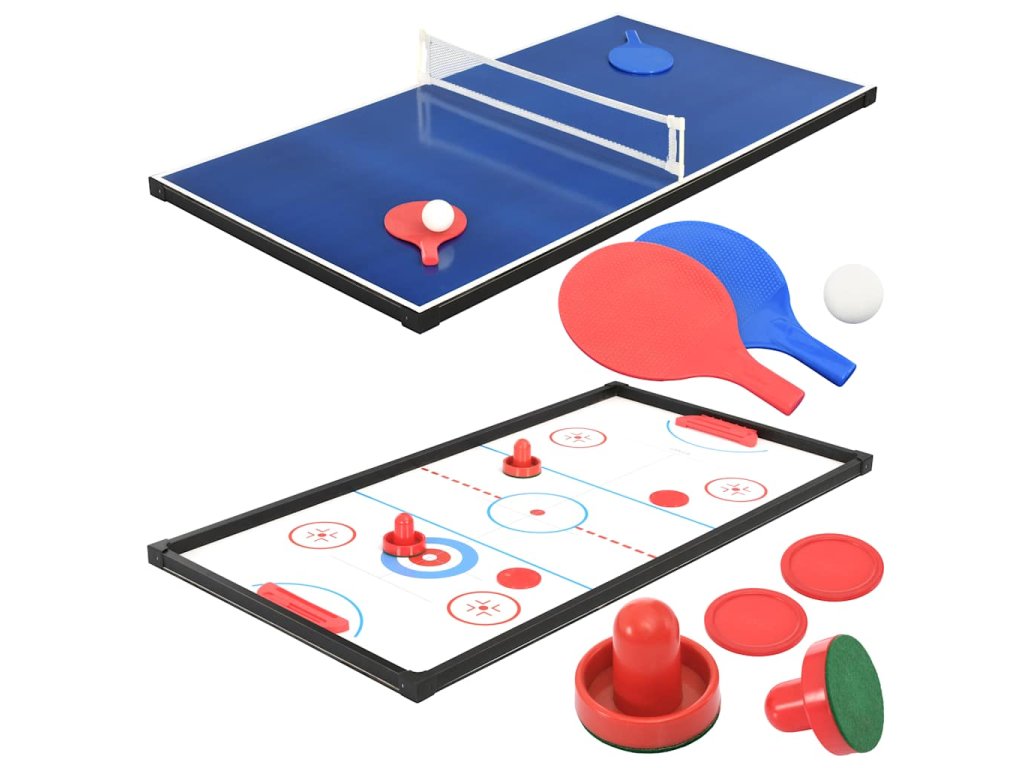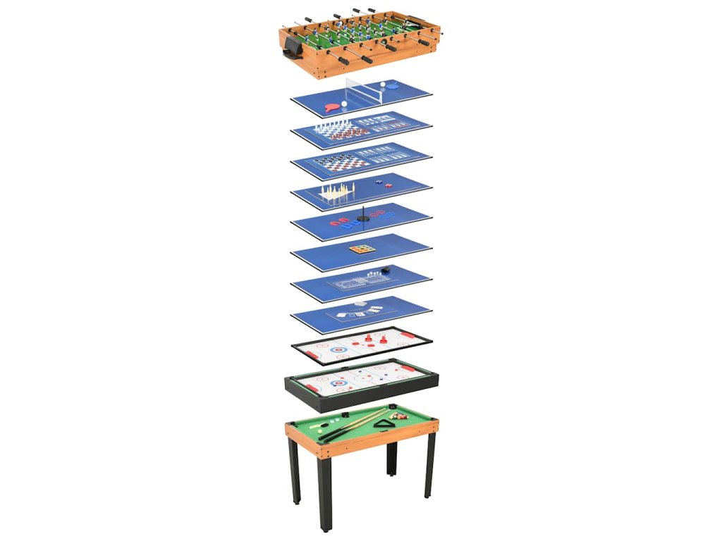 Obsahuje 15 hier, vrátane šachu, dámy, backgammonu, stolného tenisu, shuffleboardu, hokeja, curlingu, bowlingu, futbalu, biliardu, hádzania krúžkov a podkov, piškvoriek, hracích kariet a hokeja. Všetko herné príslušenstvo, ako sú biliardové gule, pingpongové loptičky či hracie karty, sú tiež súčasťou balenia. Stôl sa ľahko používa a mení na inú hru. Má odolné nohy s jedinečným dizajnom a vyznačujú sa dlhou životnosťou.