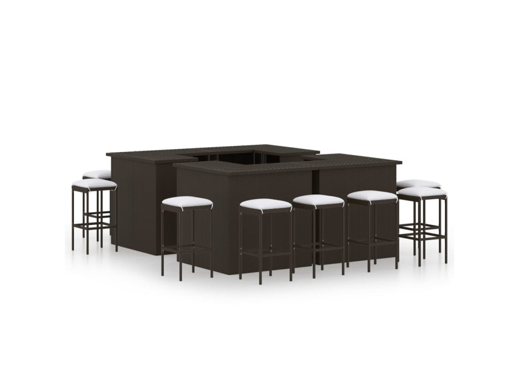 Barová súprava je vyrobená z PE ratanu, ktorý je vodovzdorný a odolný voči poveternostným vplyvom. Dá sa ľahko očistiť, je trvácna a vhodná aj na každodenné používanie. Oceľový rám s práškovou povrchovou úpravou dodáva všetkým položkám potrebnú stabilitu a odolnosť. Vďaka ľahkej konštrukcii sa dajú bez námahy presúvať. Hrubé, odnímateľné podložky na sedadlo poskytujú optimálne pohodlie. Podložky na sedadlo majú poťahy na zips, ktoré môžete jednoducho zvliecť a oprať.