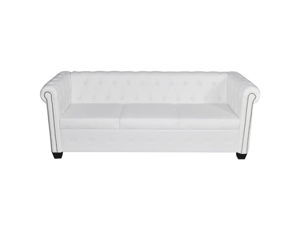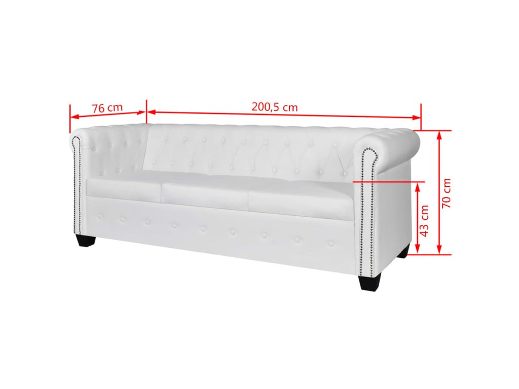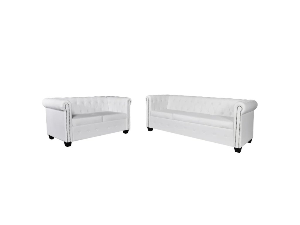 Táto súprava pohoviek Chesterfield pozostáva z 2-miestnej a 3-miestnej pohovky, ktoré stelesňujú perfektnú kombináciu pohodlia a sofistikovanosti a stanú sa tak skvelým doplnkom do domácnosti alebo do kancelárie. Súprava 2-miestnej a 3-miestnej pohovky s ozdobnými gombíkmi na operadlách a dekoratívnym lemom na elegantne zahnutých opierkach na ruky dodá vášmu interiéru nádych luxusu, noblesy a štýlu.