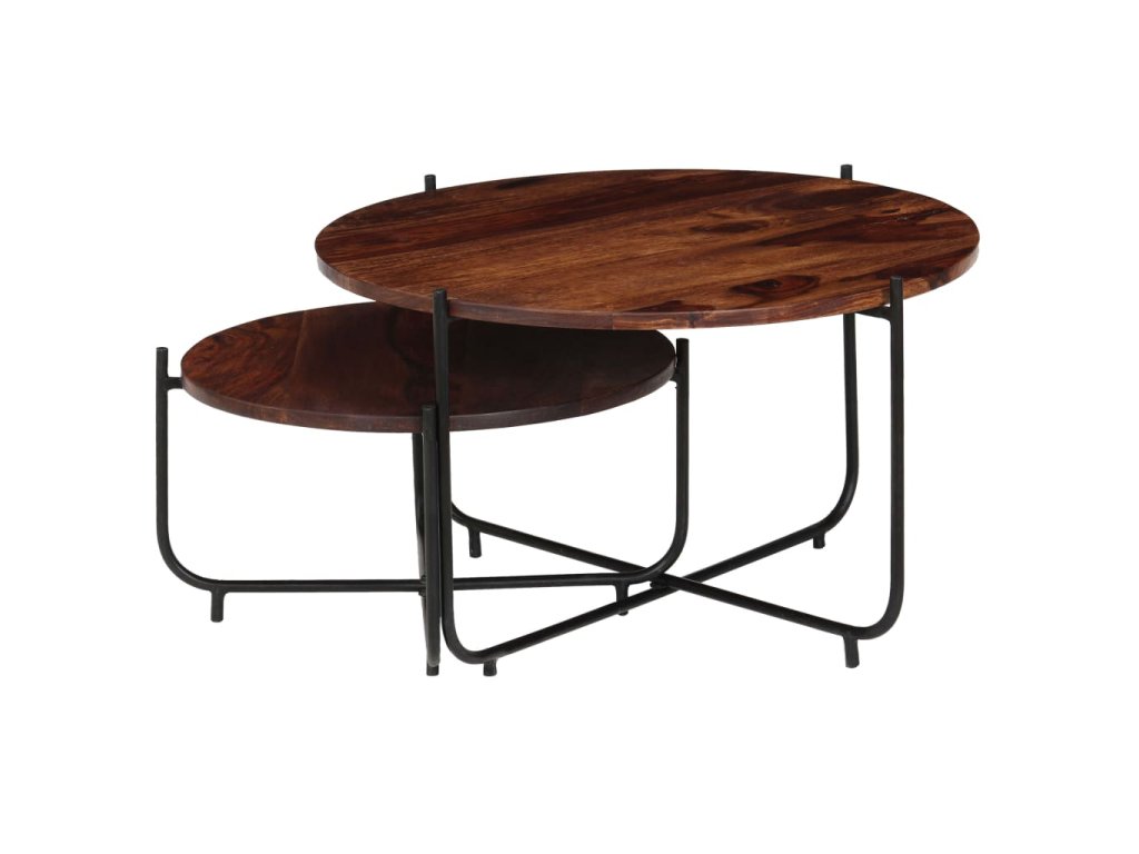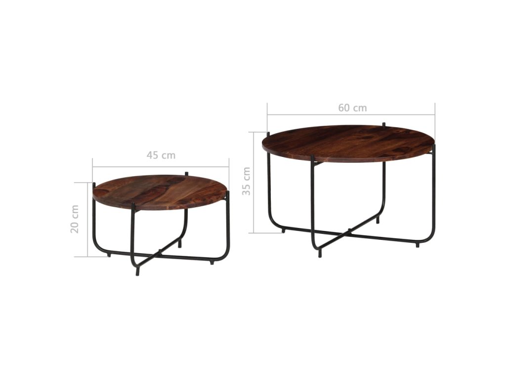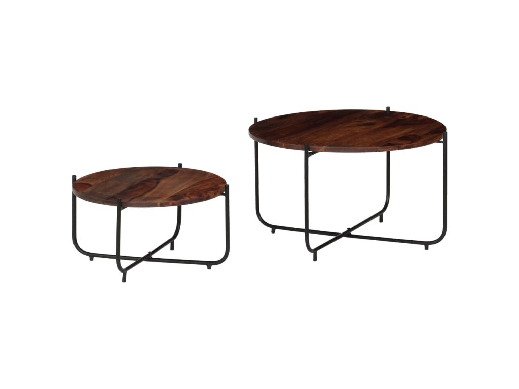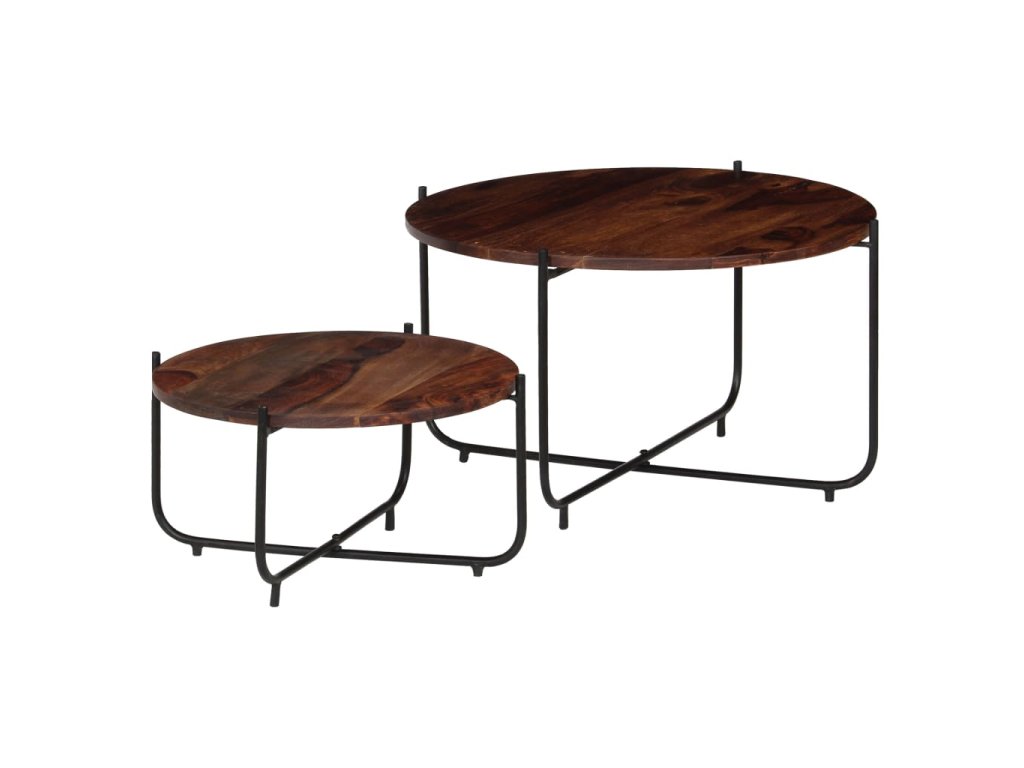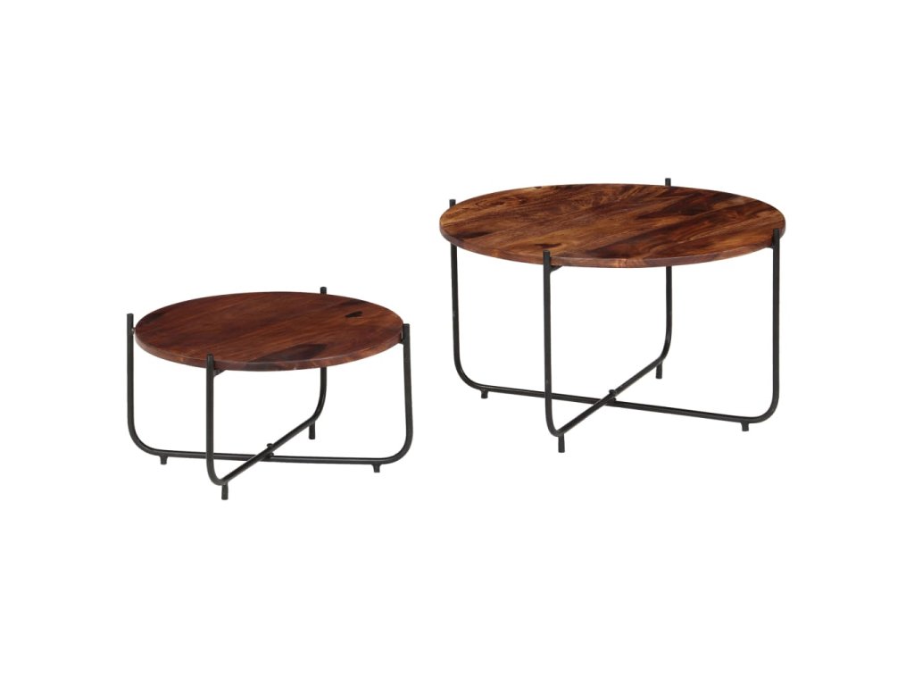 Táto sada sa skladá z 2 konferenčných stolíkov, ktoré sú vyrobené zo akáciového masívneho dreva a ocele. Dodá vašej domácnosti nádych starožitného šarmu. Môžu byť tiež použité ako stolíky ku gauču, bočné stolíky, príručné stolíky alebo stolíky do obývačky.