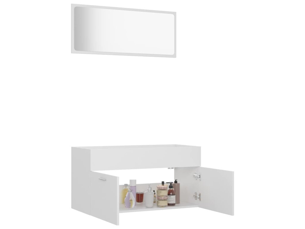 Táto súprava nábytku pozostáva zo zrkadla a skrinky a je vyrobená z trvácneho a stabilného kompozitného dreva. Kúpeľňová skrinka má 1 priečinok a 2 dvierka, a tak poskytuje dostatok priestoru na odkladanie rôznych predmetov v kúpeľni. Na hornú časť skrinky si môžete položiť umývadlo. Zrkadlo vášmu interiéru dodá krásny vzhľad. Súprava sa navyše dá ľahko očistiť navlhčenou handričkou.