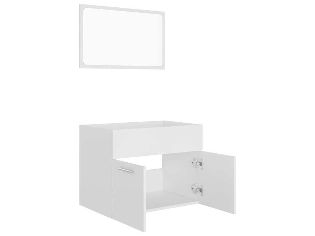 Táto súprava nábytku pozostáva zo zrkadla a skrinky a je vyrobená z trvácneho a stabilného kompozitného dreva. Kúpeľňová skrinka má 1 priečinok a 2 dvierka, a tak poskytuje dostatok priestoru na odkladanie rôznych predmetov v kúpeľni. Na hornú časť skrinky si môžete položiť umývadlo. Zrkadlo vášmu interiéru dodá krásny vzhľad. Súprava sa navyše dá ľahko očistiť navlhčenou handričkou.