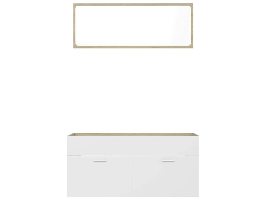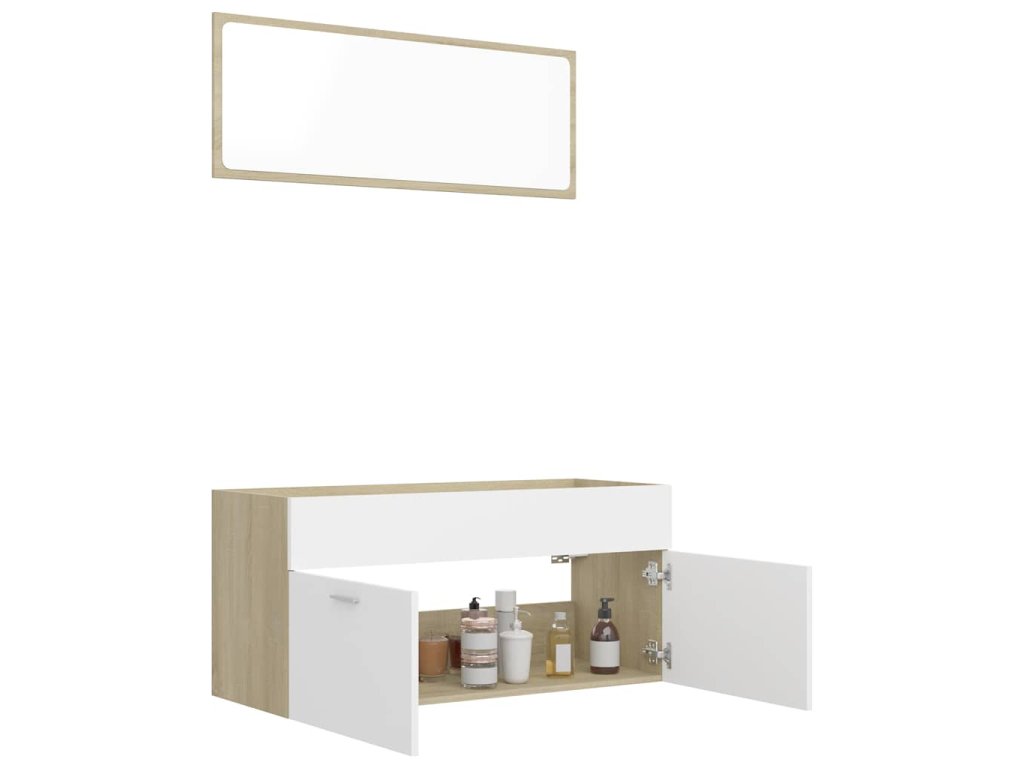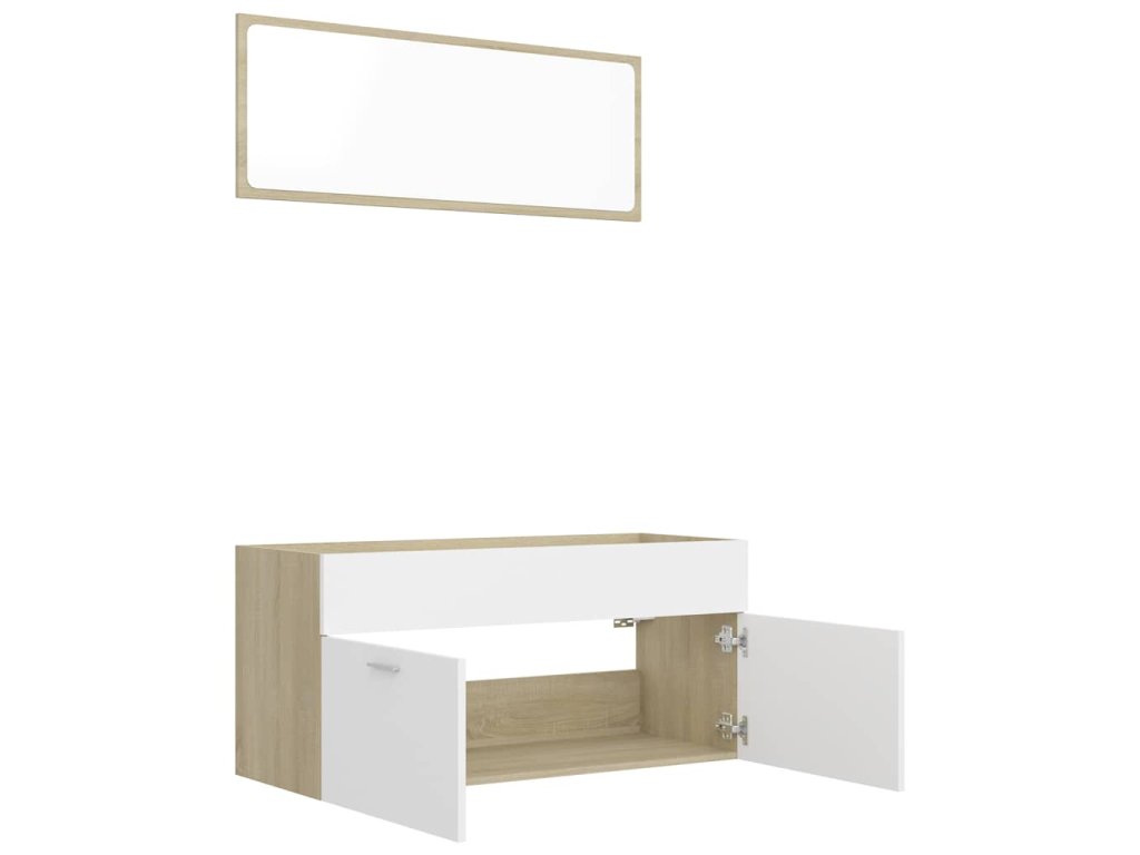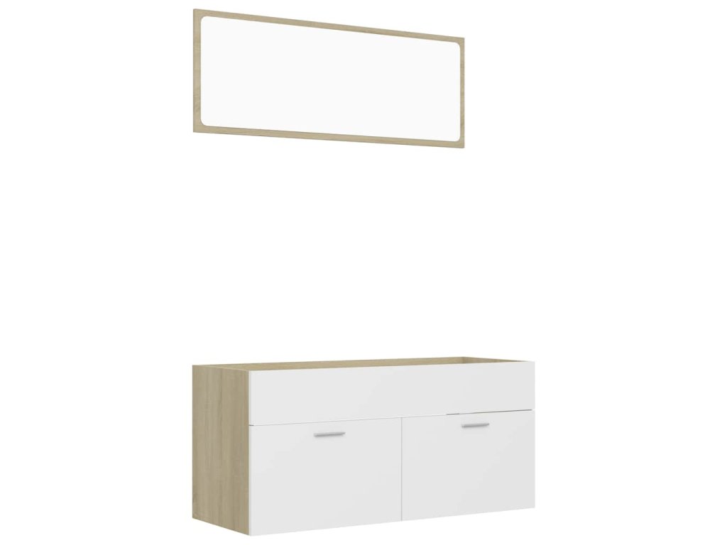 Táto súprava nábytku pozostáva zo zrkadla a skrinky a je vyrobená z trvácneho a stabilného kompozitného dreva. Kúpeľňová skrinka má 1 priečinok a 2 dvierka, a tak poskytuje dostatok priestoru na odkladanie rôznych predmetov v kúpeľni. Na hornú časť skrinky si môžete položiť umývadlo. Zrkadlo vášmu interiéru dodá krásny vzhľad. Súprava sa navyše dá ľahko očistiť navlhčenou handričkou.