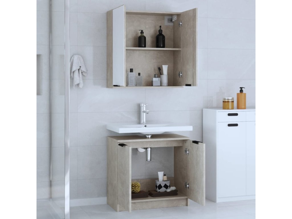 Táto atraktívna súprava kúpeľňových skriniek s dostatočným úložným priestorom má štýlový a zároveň praktický dizajn.