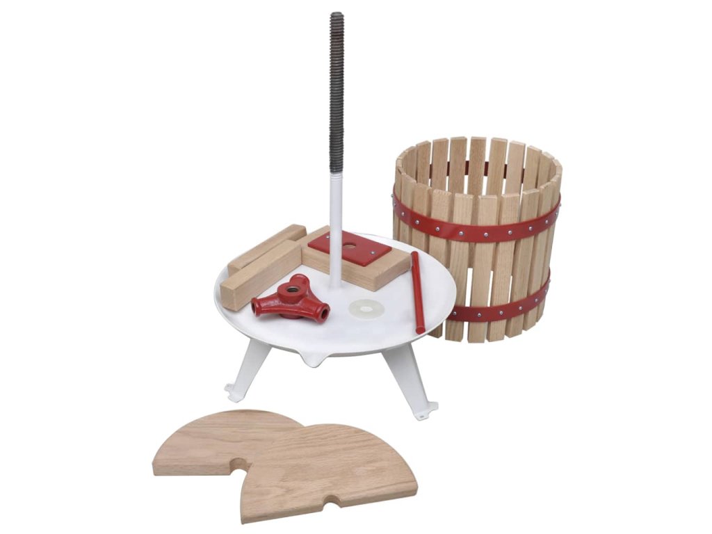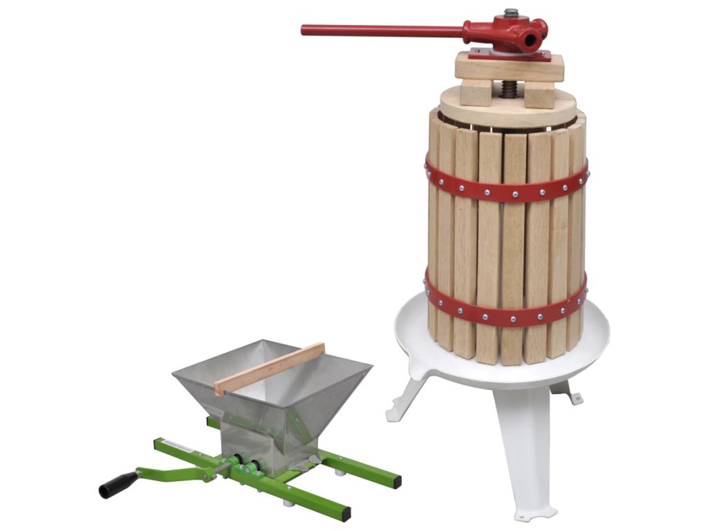Vychutnajte si čerstvo vylisovanú šťavu u vás doma s našou odšťavovacou sadou! Táto ľahko použiteľná sada na lisovanie ovocia a vína vám umožní bez námahy vyrobiť vlastné šťavy na hroznové a jablčné víno! Lis je ideálny na hrozno, bobuľové a iné ovocie. Drvič je nevyhnutný pri drvení jabĺk, hrušiek, broskýň, ananásu a iného tvrdého ovocia.