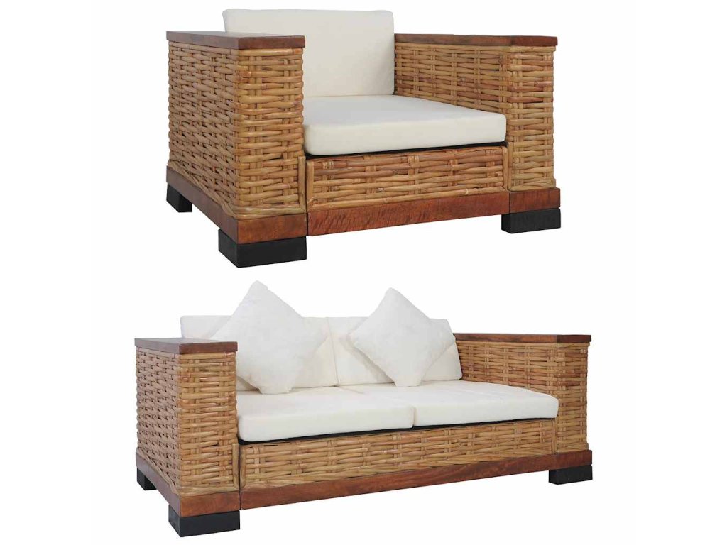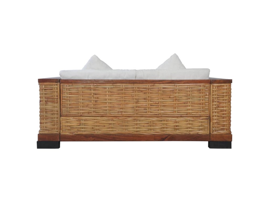 Vďaka pravému ratanovému materiálu sa táto súprava jednoducho čistí, je odolná a vhodná na každodenné použitie. Má pevný drevený rám, ktorý je skutočne trvácny a stabilný. Hrubé podsedáky a vankúše sú pohodlné a vďaka odnímateľným návliečkam sú aj umývateľné. Široké opierky zaistia, že sa na pohovke pohodlne sedí.