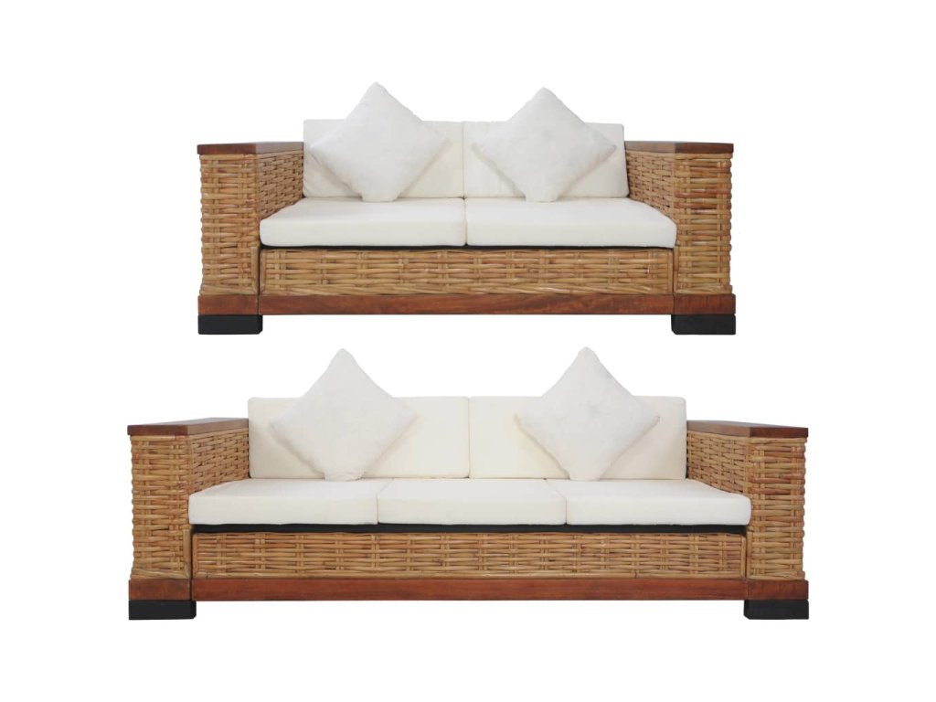 Vďaka pravému ratanovému materiálu sa táto súprava jednoducho čistí, je odolná a vhodná na každodenné použitie. Má pevný drevený rám, ktorý je skutočne trvácny a stabilný. Hrubé podsedáky a vankúše sú pohodlné a vďaka odnímateľným návliečkam sú aj umývateľné. Široké opierky zaistia, že sa na pohovke pohodlne sedí.