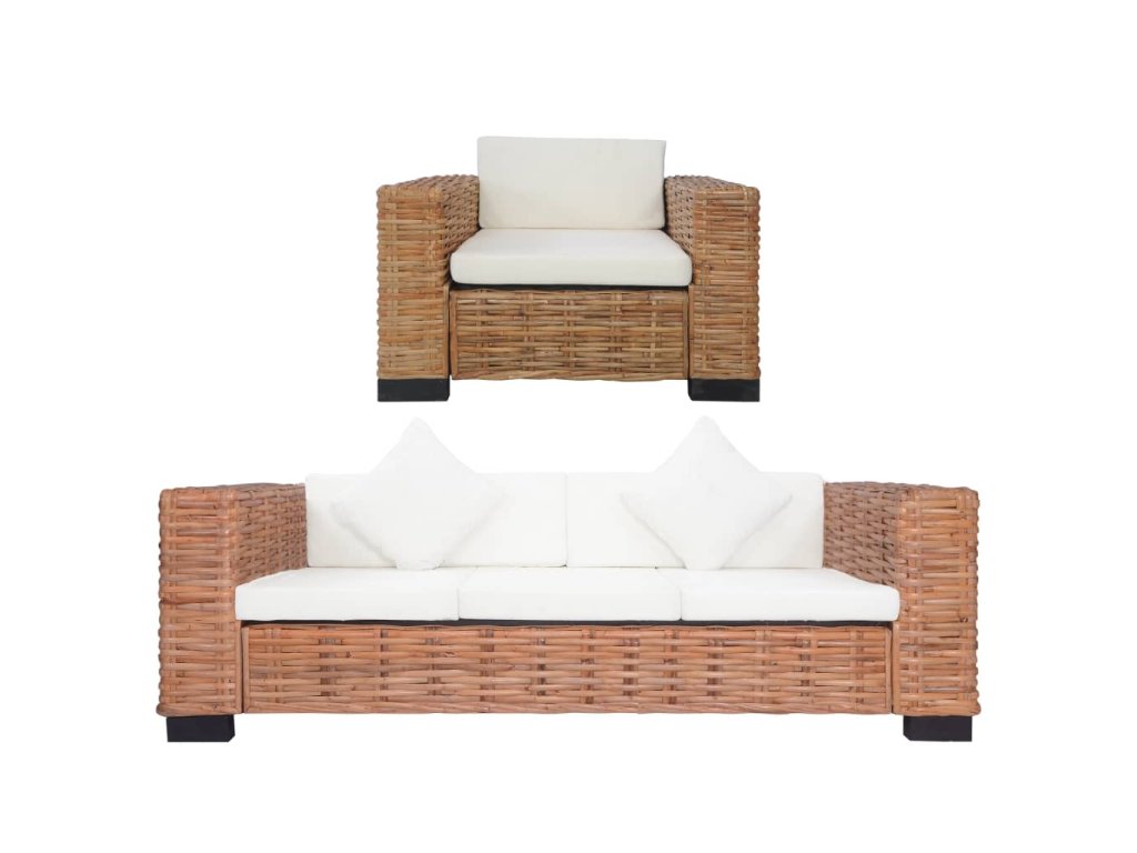 Vďaka pravému ratanovému materiálu sa táto súprava jednoducho čistí, je odolná a vhodná na každodenné použitie. Má pevný drevený rám, ktorý je skutočne trvácny a stabilný. Hrubé podsedáky a vankúše sú pohodlné a vďaka odnímateľným návliečkam sú aj umývateľné. Široké opierky zaistia, že sa na pohovke pohodlne sedí.