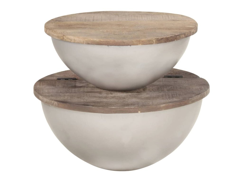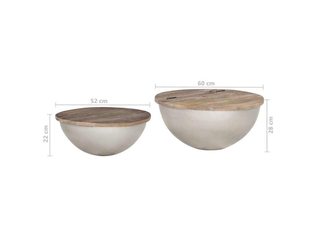 Stôl je vyrobený z tropického mangového dreva, hustého a pevného tvrdého dreva, ktoré je trvanlivé a krásne. Môžete si naň umiestniť nápoje, ozdobné predmety, knihy atď. Vďaka pevnej oceľovej konštrukcii v tvare misky je stôl stabilný a odolný. Každý krok procesu výroby sa vykonáva s najväčšou starostlivosťou, či už ide o leštenie alebo lakovanie. Remeselné spracovanie mu dodáva veľkolepý retro štýl. Vďaka krásnej štruktúre dreva je každý kus nábytku jedinečným a mierne odlišným od ostatných. Balenie obsahuje 2 konferenčné stolíky v rôznych veľkostiach.