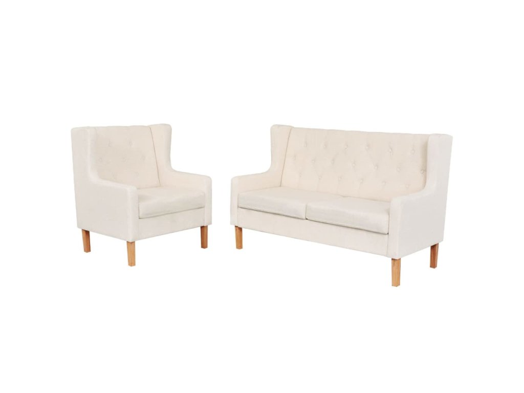 Súprava pohoviek je potiahnutá mäkkou polyesterovou látkou a vyčalúnená molitanom, a tak poskytuje optimálny komfort. Rám z dreveného masívu zabezpečuje stabilitu a trvácnosť. Montáž je naozaj jednoduchá.