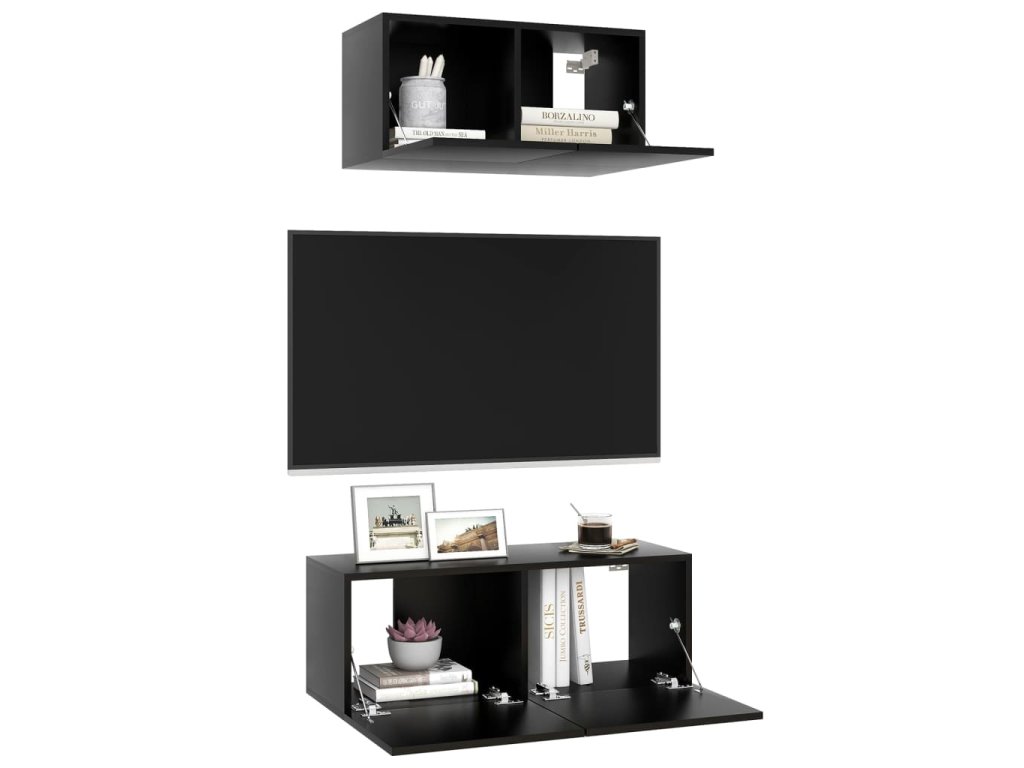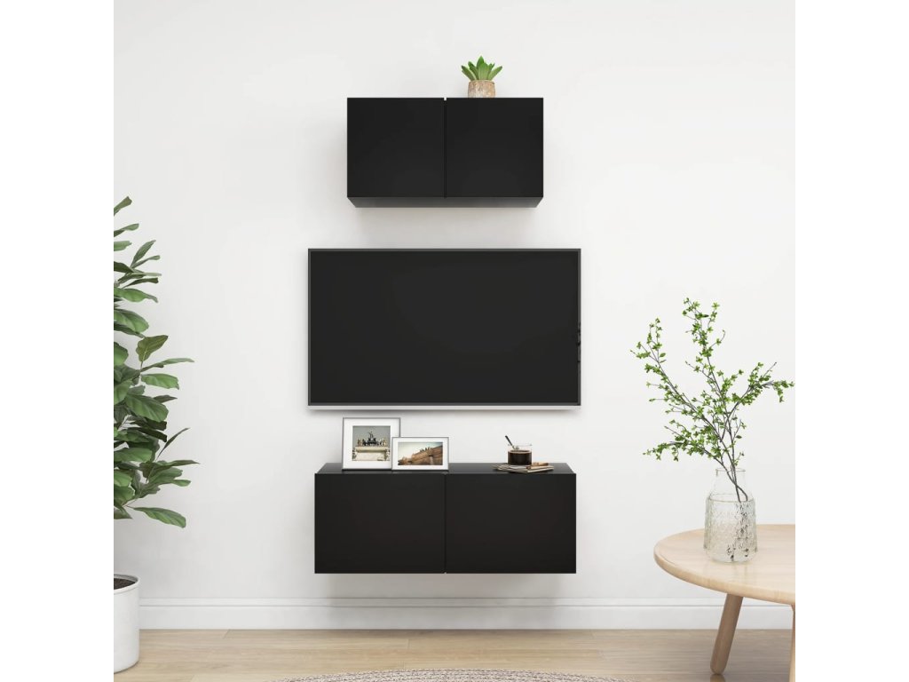 Táto sada závesných TV skriniek je vybavená veľkým úložným priestorom na uloženie rôznych predmetov a vo vašej domácnosti vytvorí praktický a pútavý doplnok.