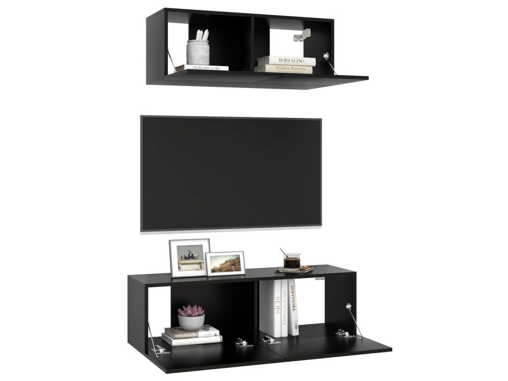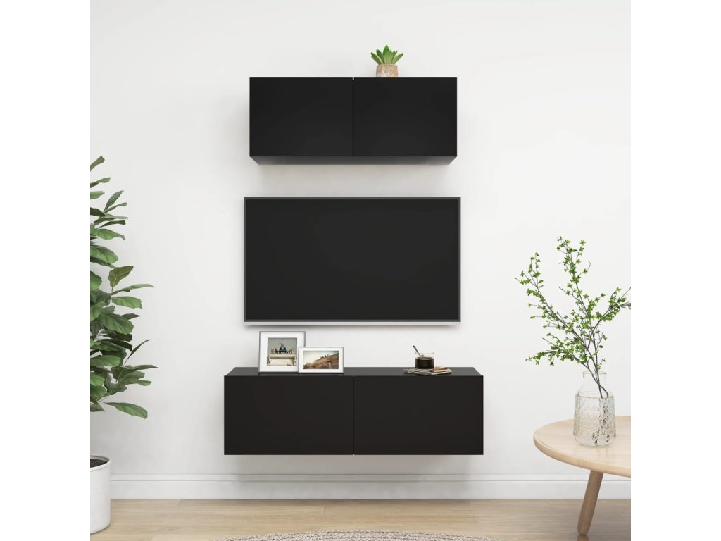 Táto sada závesných TV skriniek je vybavená veľkým úložným priestorom na uloženie rôznych predmetov a vo vašej domácnosti vytvorí praktický a pútavý doplnok.