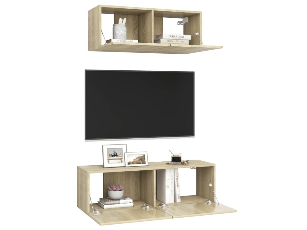 Táto sada závesných TV skriniek je vybavená veľkým úložným priestorom na uloženie rôznych predmetov a vo vašej domácnosti vytvorí praktický a pútavý doplnok.