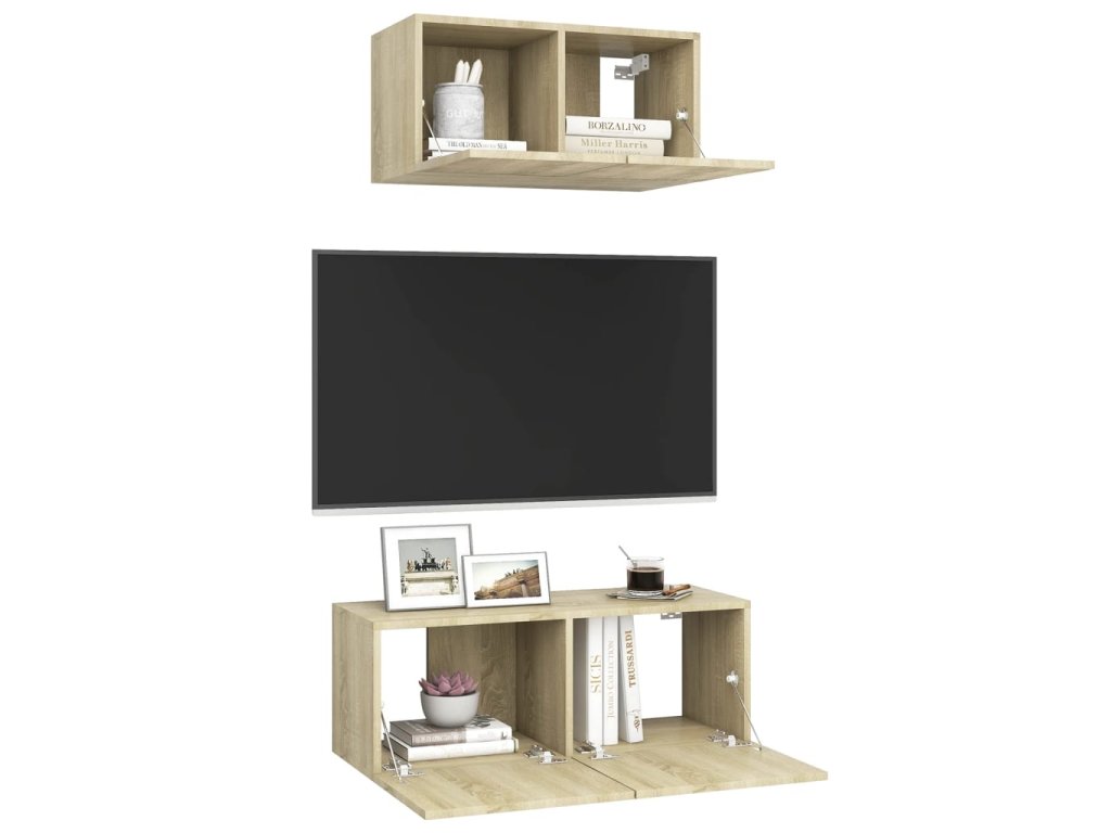 Táto sada závesných TV skriniek je vybavená veľkým úložným priestorom na uloženie rôznych predmetov a vo vašej domácnosti vytvorí praktický a pútavý doplnok.