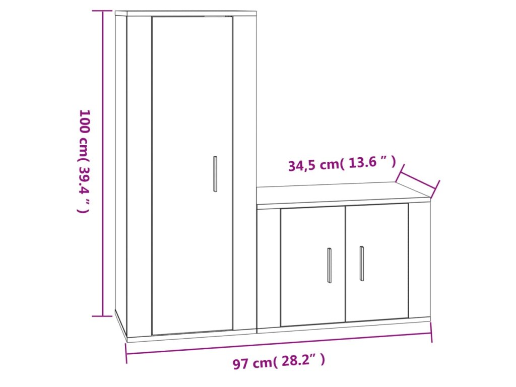 - 1 x TV skrinka: 40 x 34,5 x 100 cm (D x Š x V)