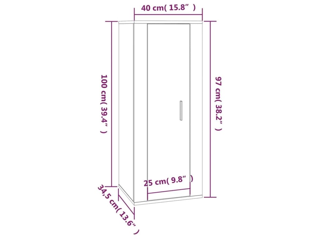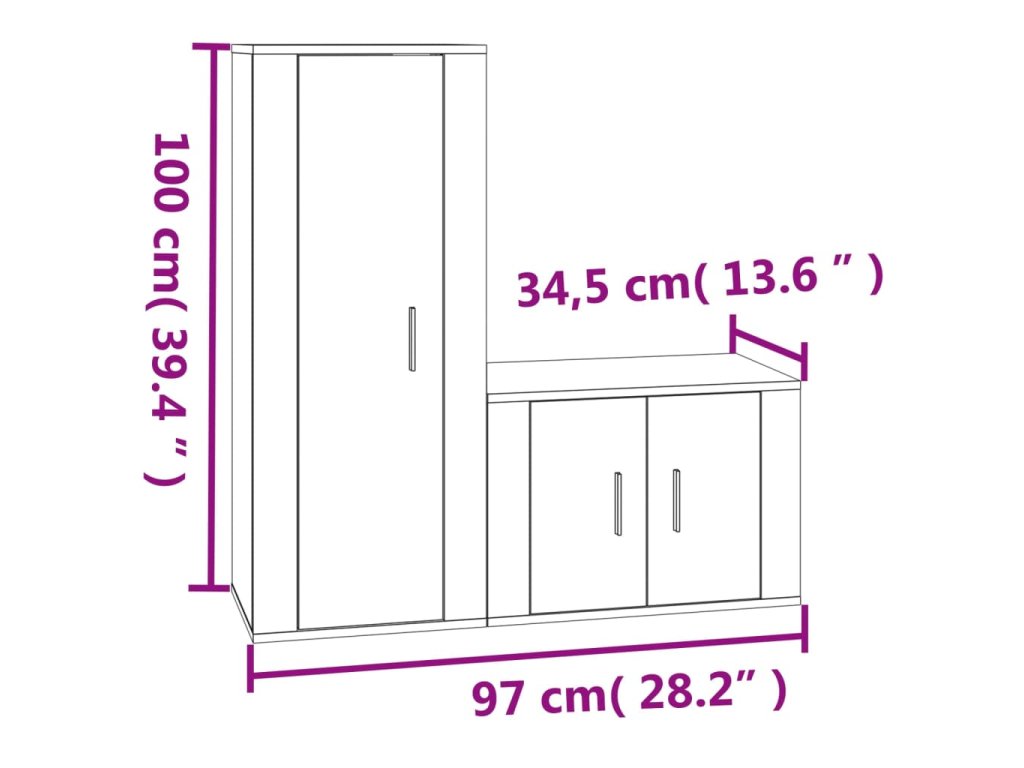 - 1 x TV skrinka: 40 x 34,5 x 100 cm (D x Š x V)