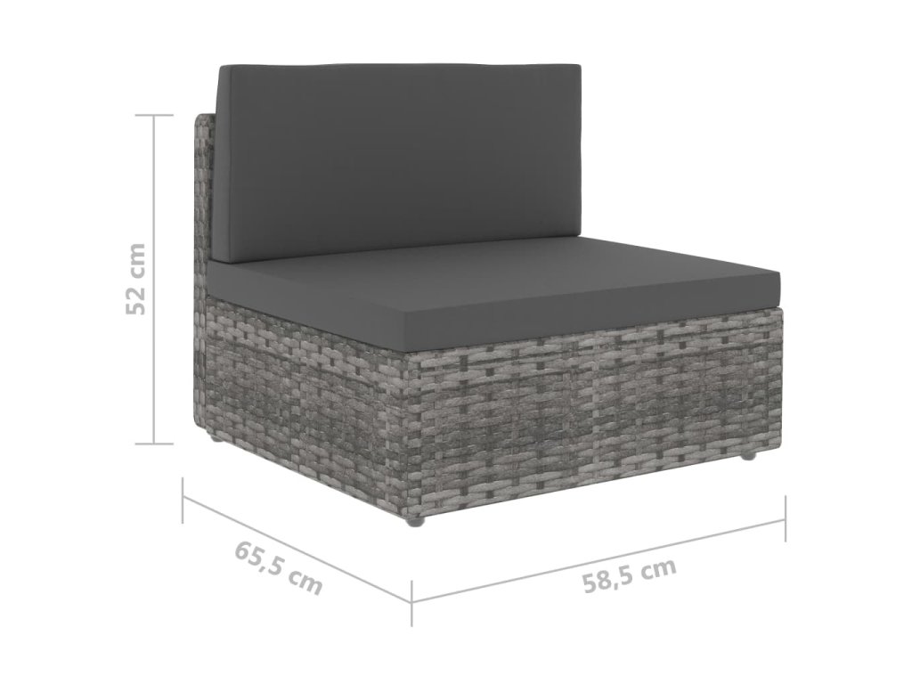 Súprava je vyrobená z PE ratanu, ktorý je odolný voči poveternostným vplyvom, takže sa ľahko čistí, je odolná a vhodná na každodenné používanie. Súprava má pevný oceľový rám s práškovou povchovou úpravou, ktorý je skutočne trvácny. Sedačka je okrem toho ľahká a modulárna, takže sa dá ľubovoľne presúvať, aby zapadla do akýchkoľvek priestorov. Hrubé odnímateľné podložky vám poskytnú optimálne pohodlie. Konferenčný stolík s doskou z tvrdeného skla poslúži na odkladanie kníh, časopisov a šálok s čajom, aby ste si mohli vychutnať príjemný oddych v záhrade. Môžete ju skombinovať s ďalšími modulárnymi dielmi, ktoré nájdete v rozbaľovacom menu, a vytvoriť si tak vlastné záhradné sedenie podľa svojich predstáv! V posledných 9 obrázkoch nájdete príklady možných kombinácií.